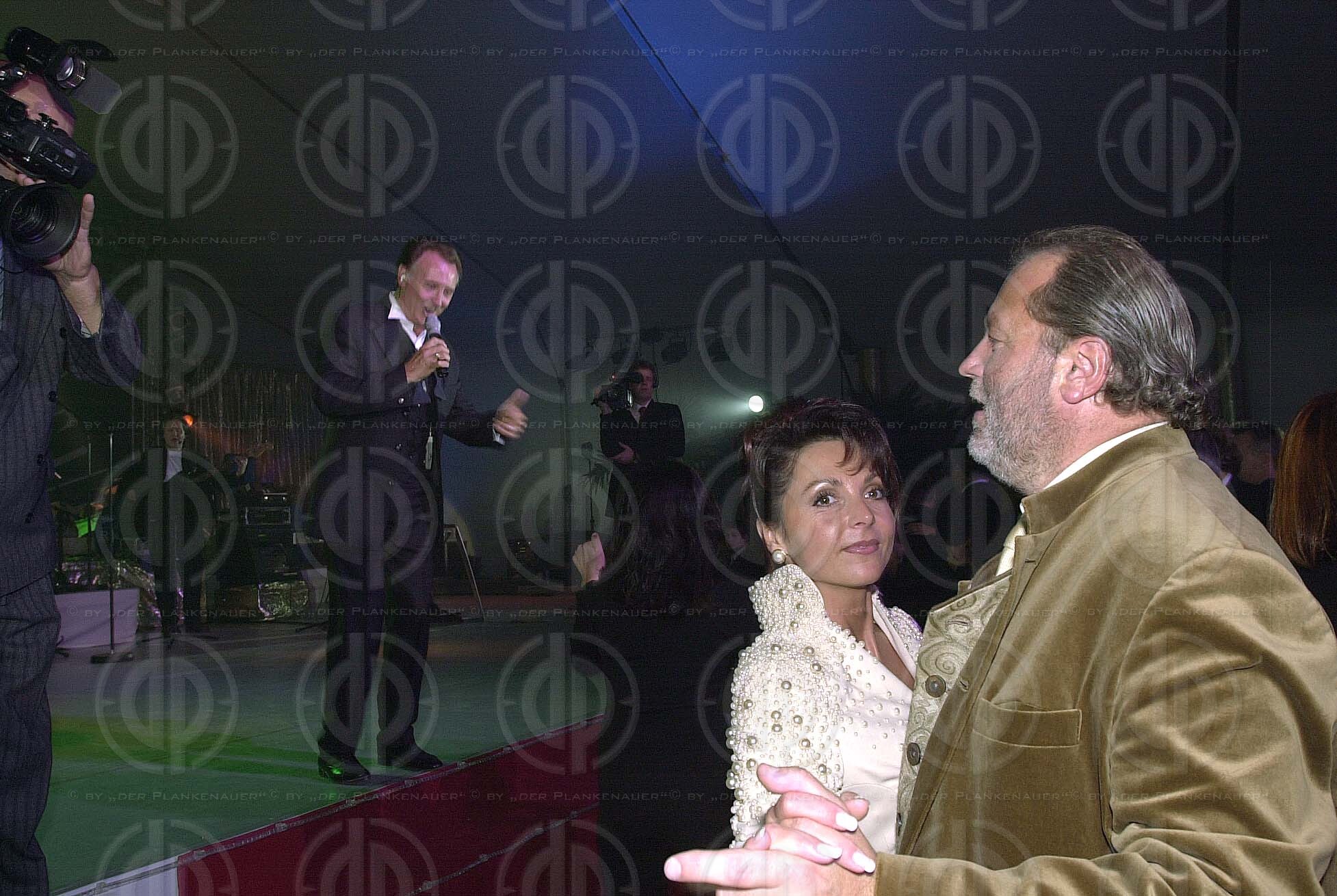 Objektbeschreibung: 50. Geburtstag von Sturm-Präsident Hannes Kartnig. Stargast Tony Christie (Amarillo). Rechts Lebensgefährtin Evelyn Hauser mit Hannes Kartnig