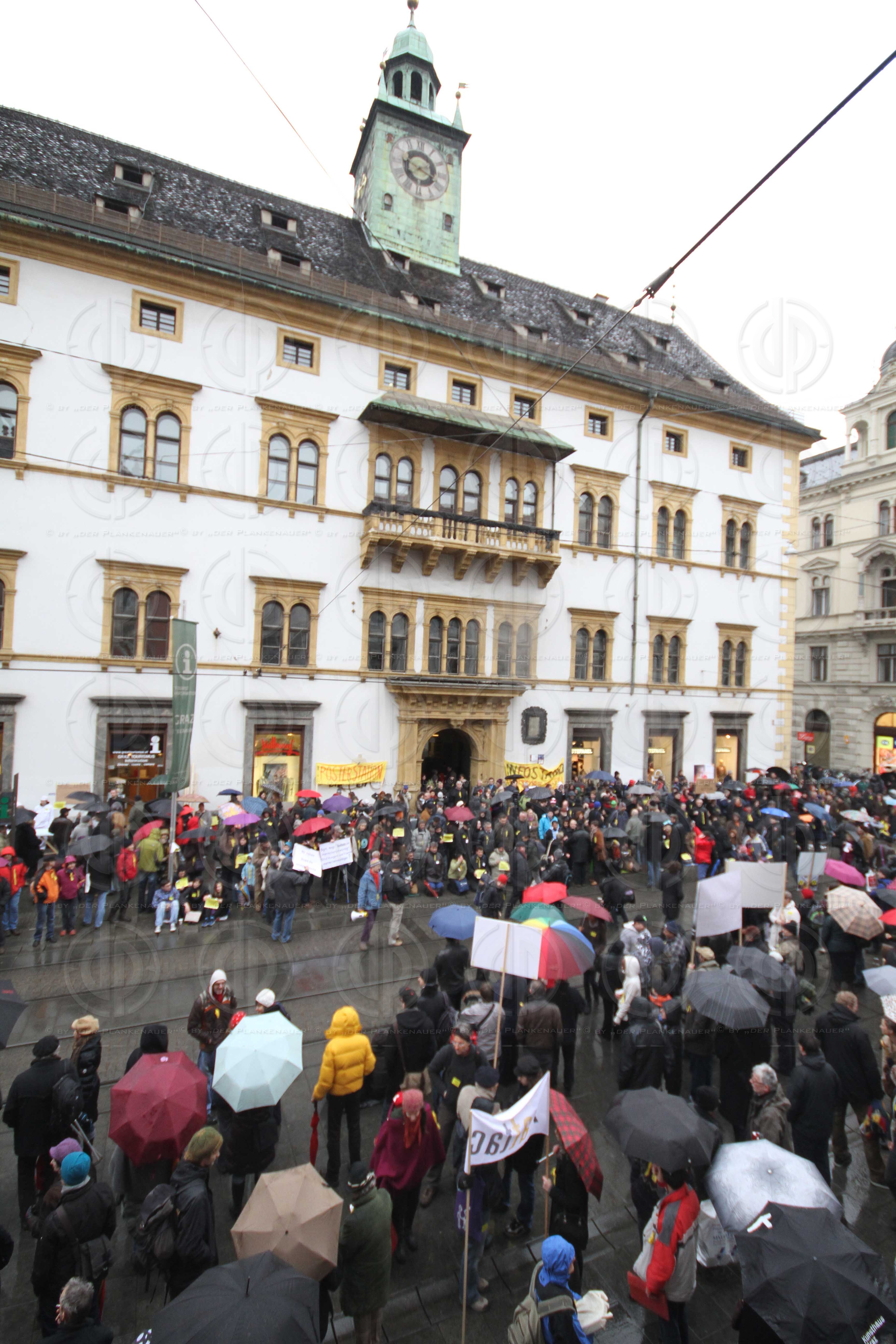 Objektbeschreibung: v.l. Demonstranten vor dem Landhaus.