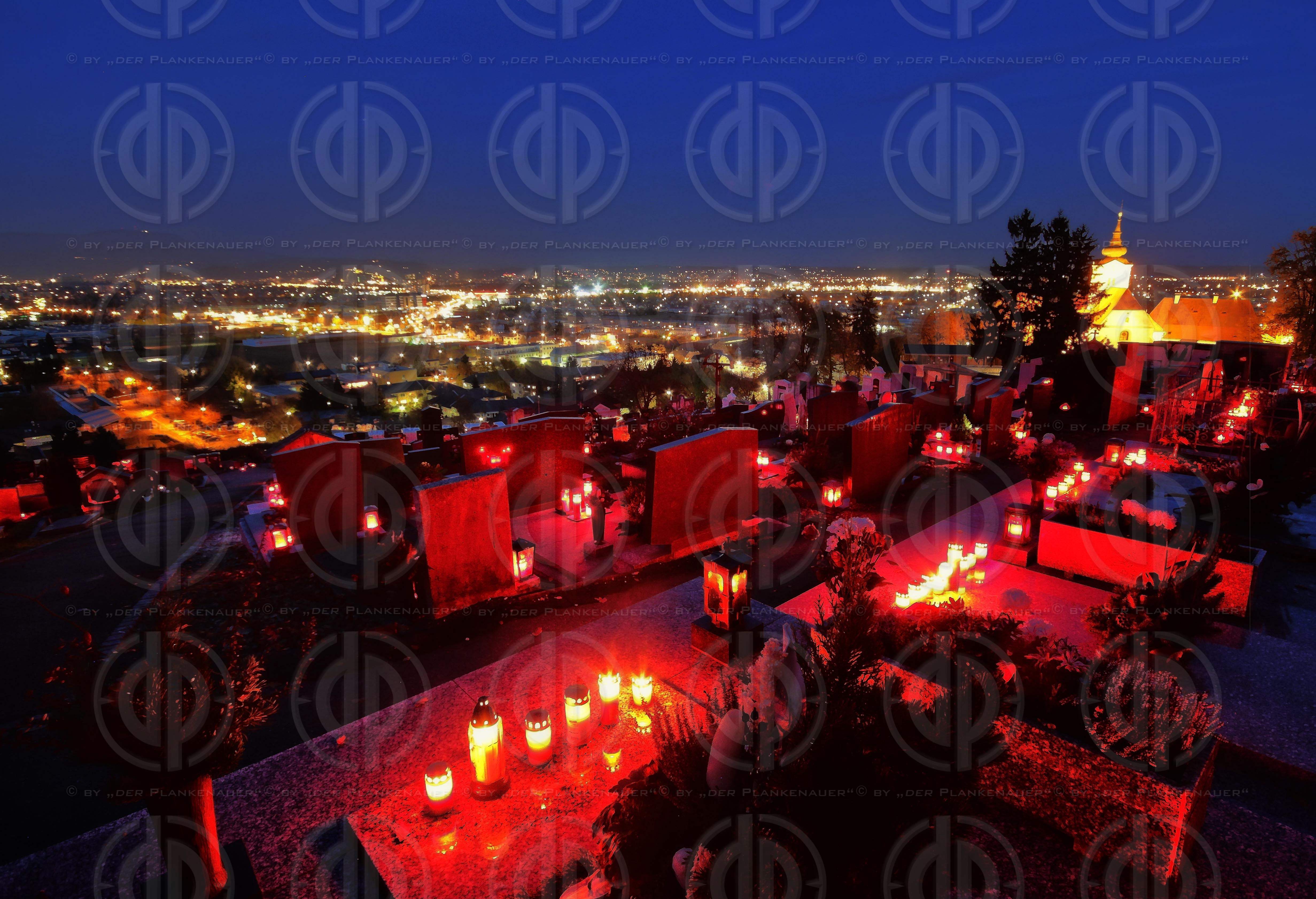 Bild zeigt: v.l. Hangfriedhof Graz-Strassgang mit Blick auf Graz in Richtung Nordost.
