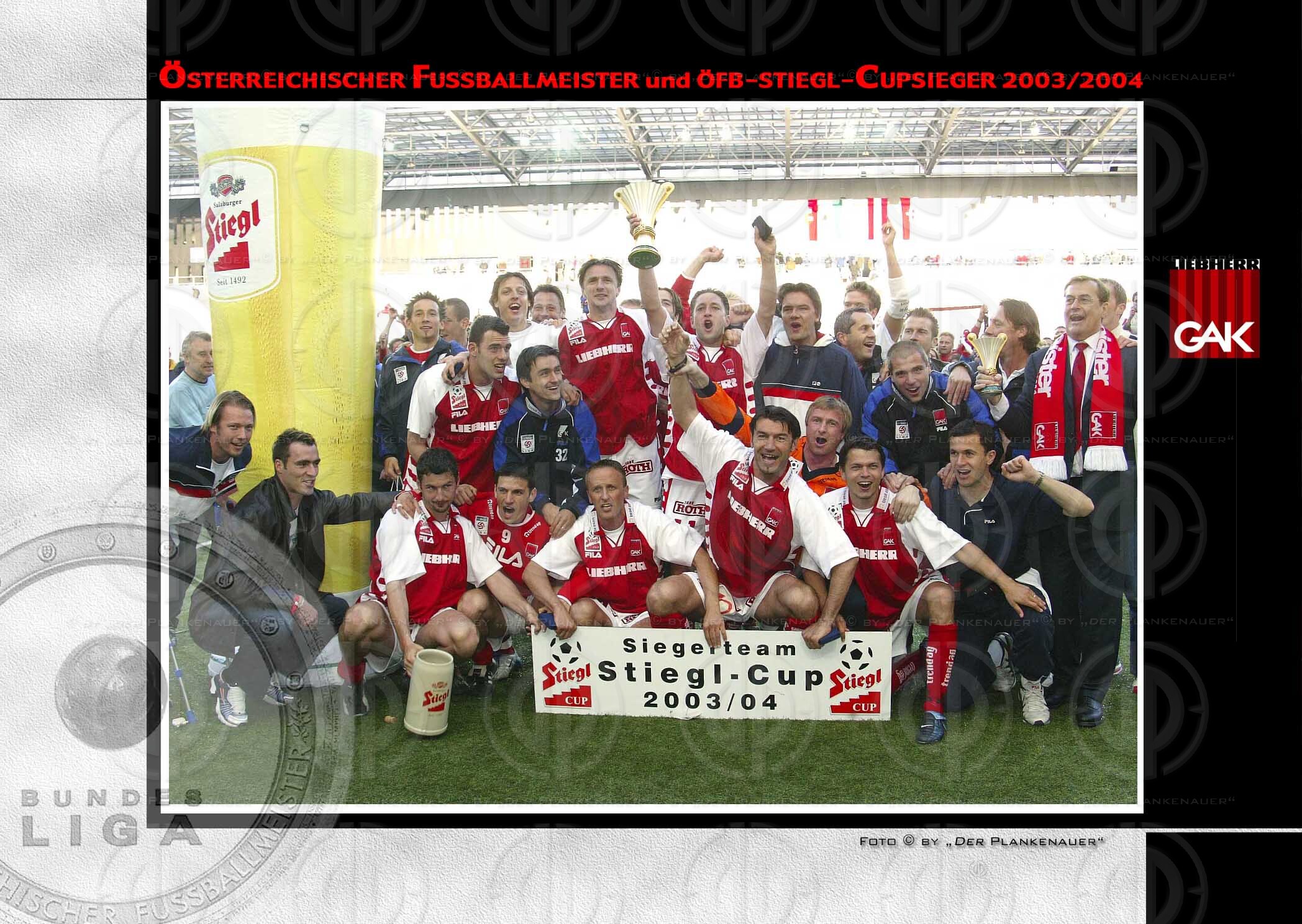 Liebherr GAK ist österreichischer Fußballmeister und Stiegl-Cupsieger 2003/2004.