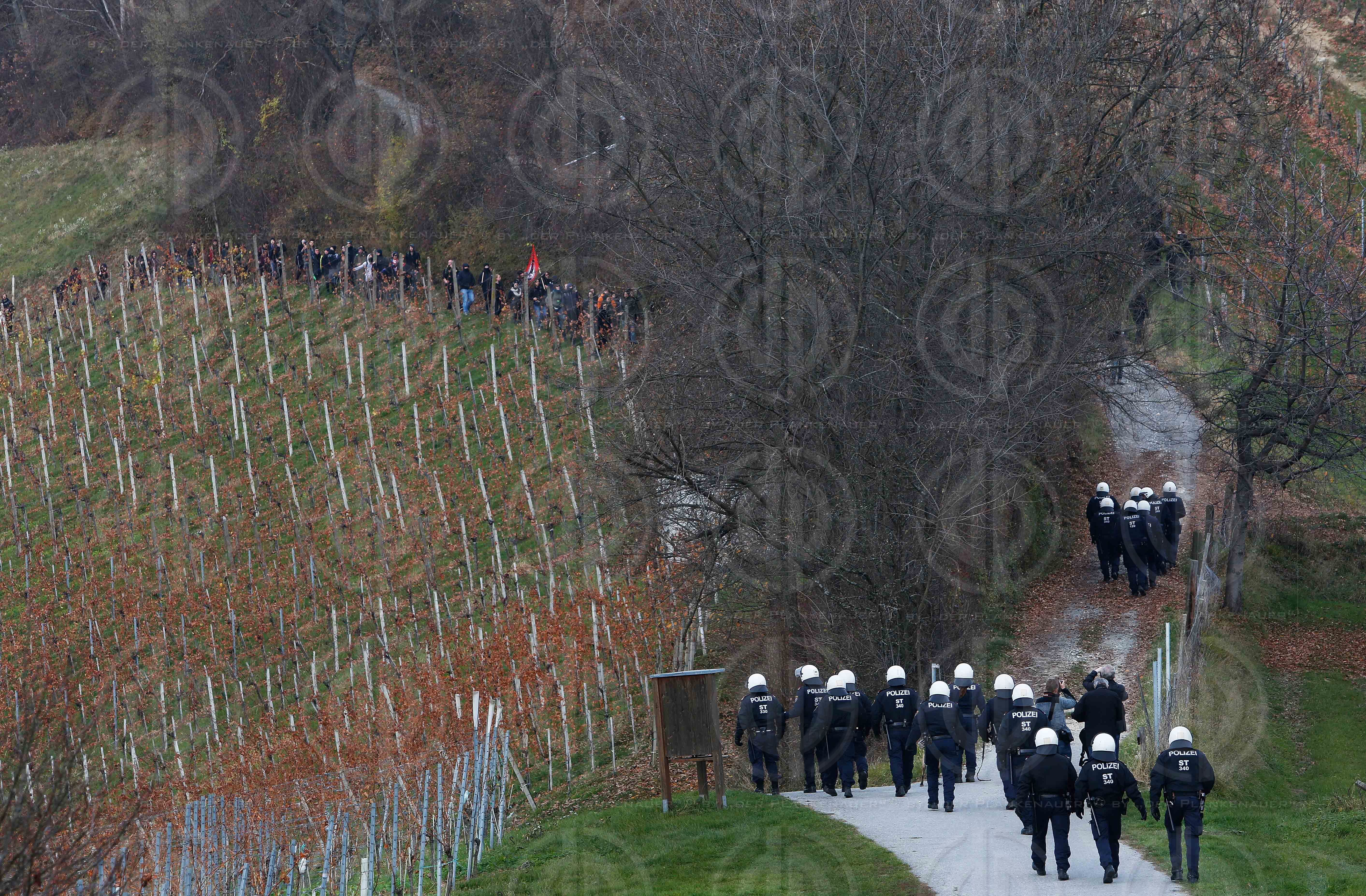 Bild zeigt: Antifa wird am Hochgrassnitzberg von Polizei gestoppt.