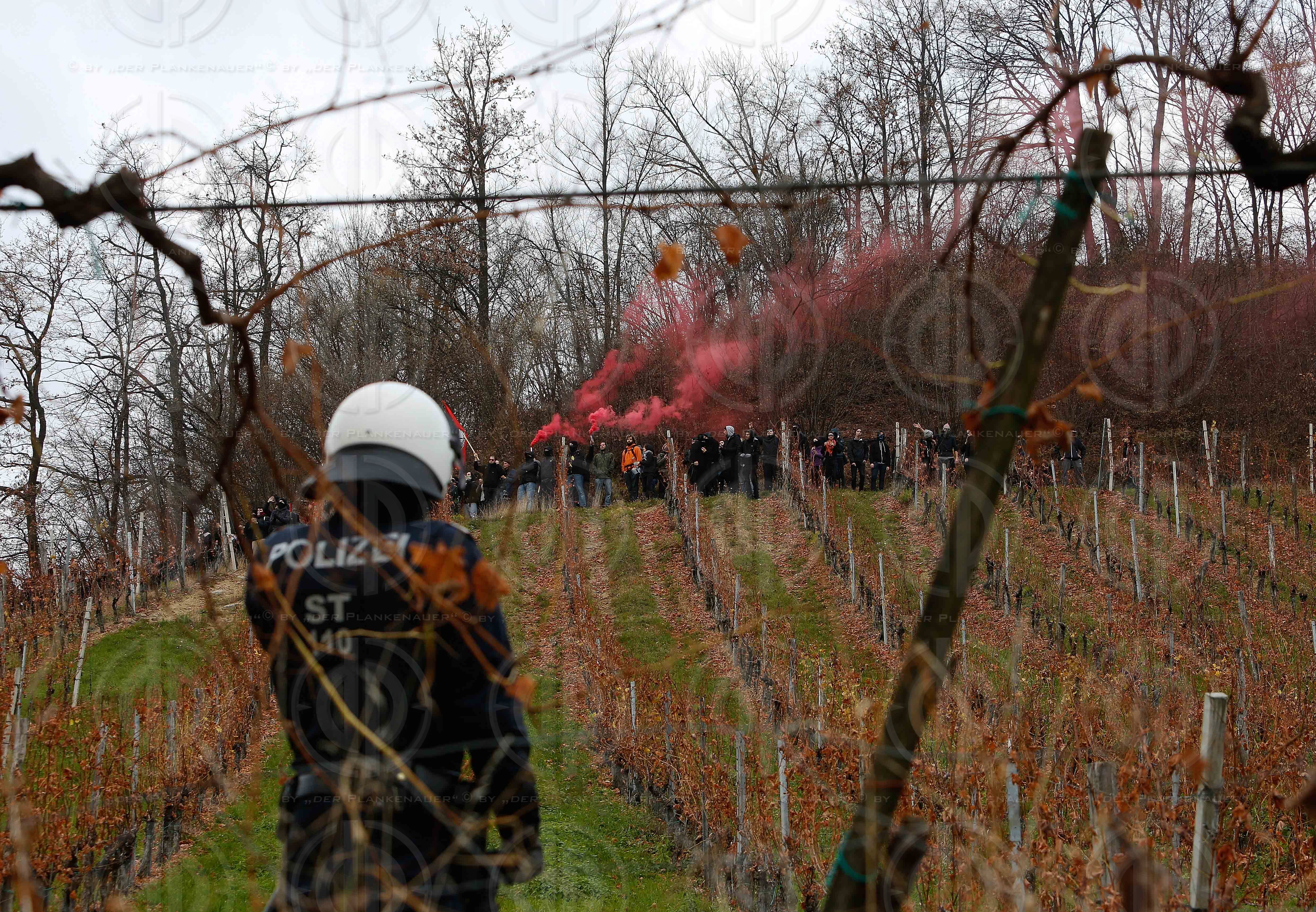 Demonstrationen der Antifa gegen die neofaschistischen Identitaere und gegen Naziaufmarsch und Festung Europa; Gegendemo der Identitaere, patriotischer Protest gegen Politik in Spielfeld, am Grassnitzberg und Zieregg am 15.11.2015.