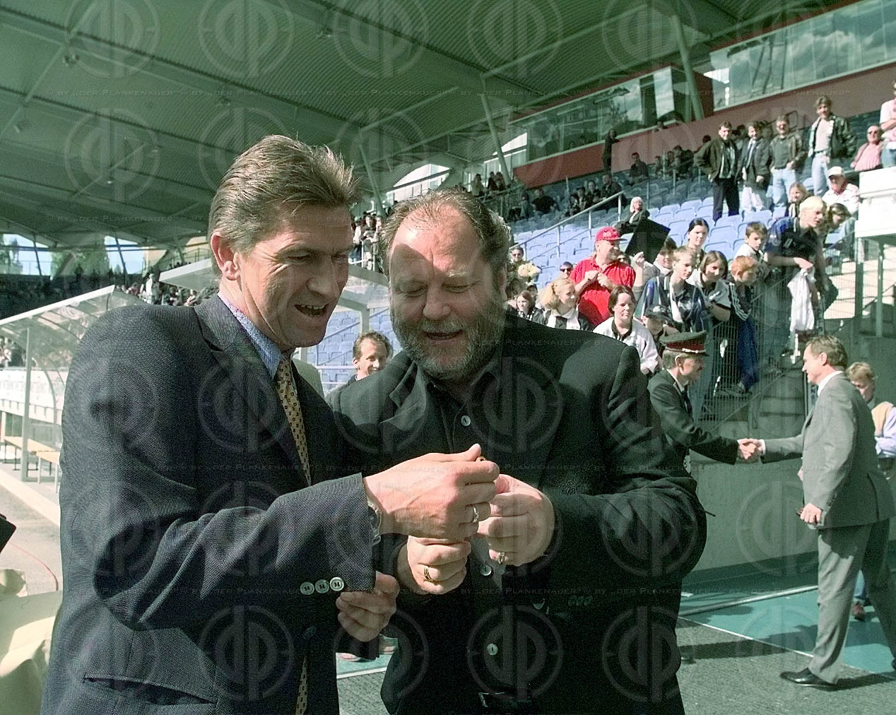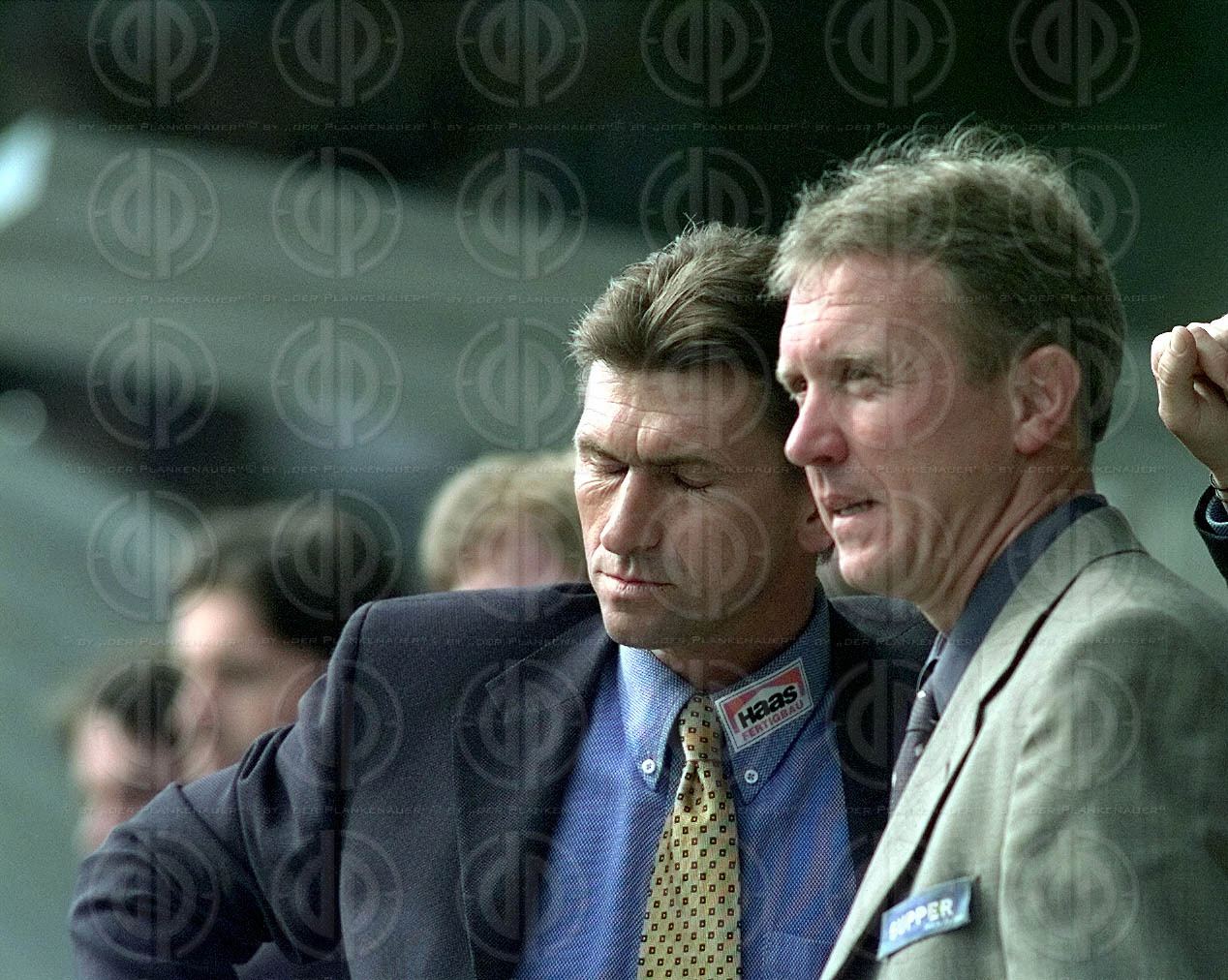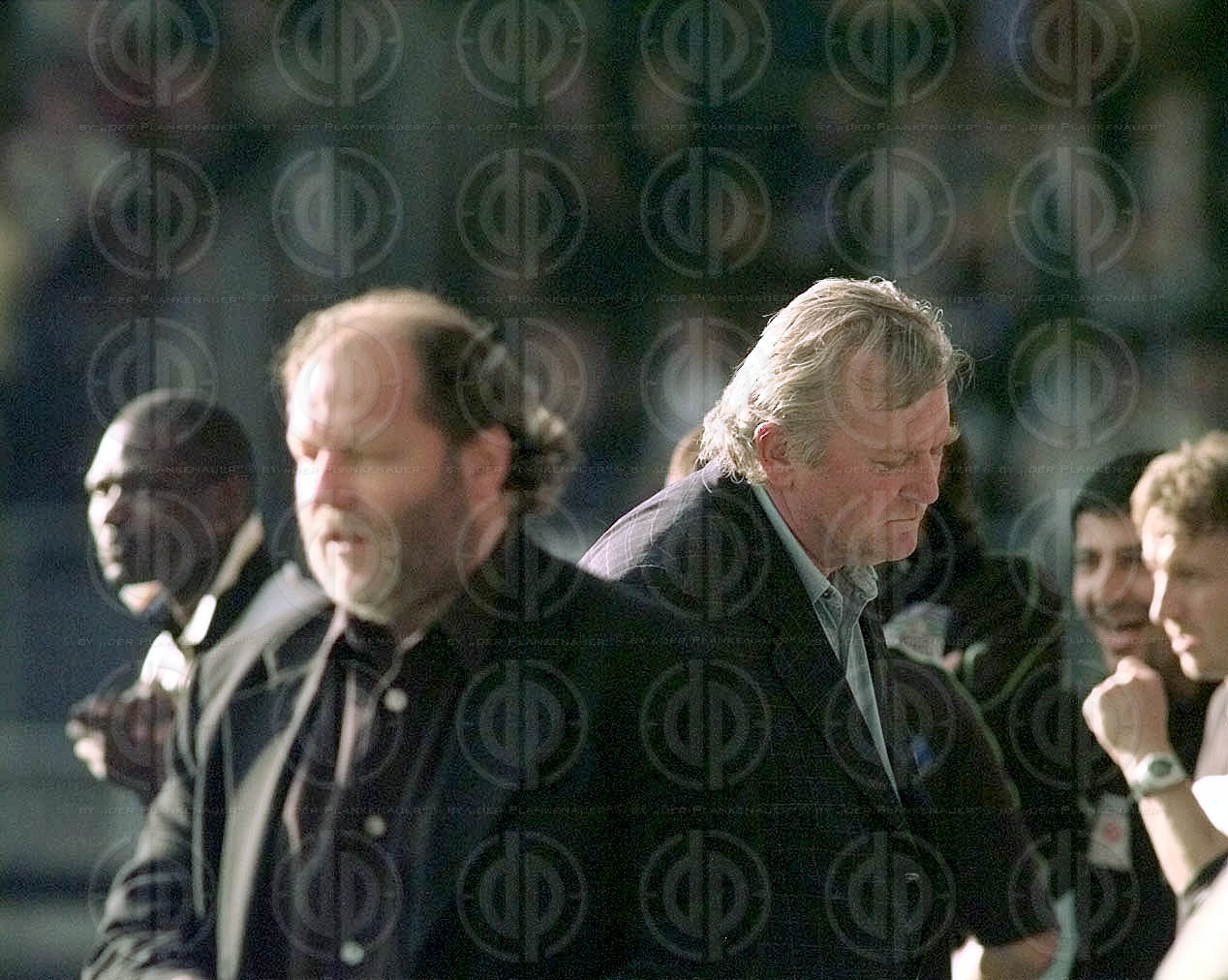 Objektbeschreibung: Trainer Klaus Augenthaler kann es nicht mehr mitansehen, rechts Co Rainer Hörgl