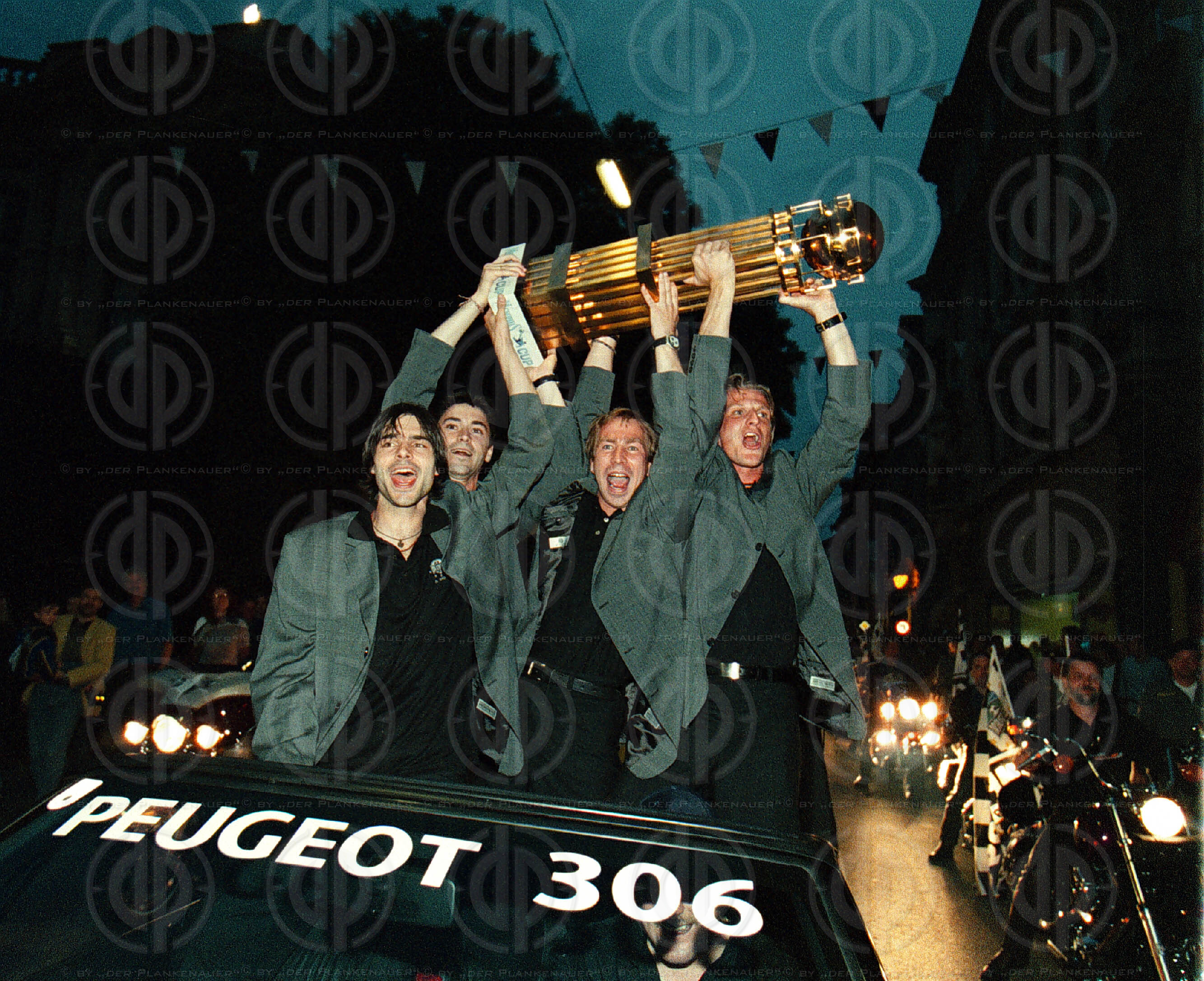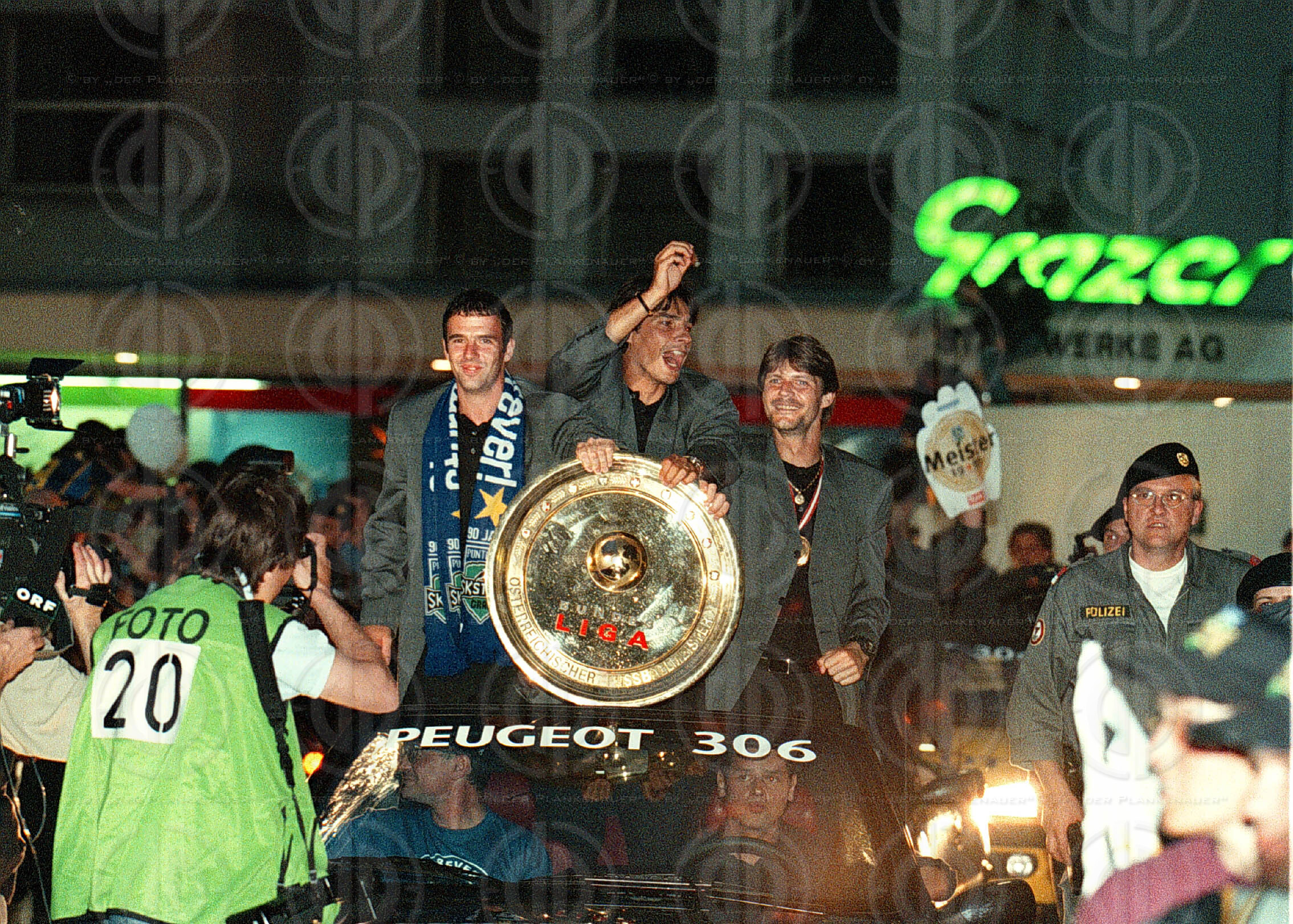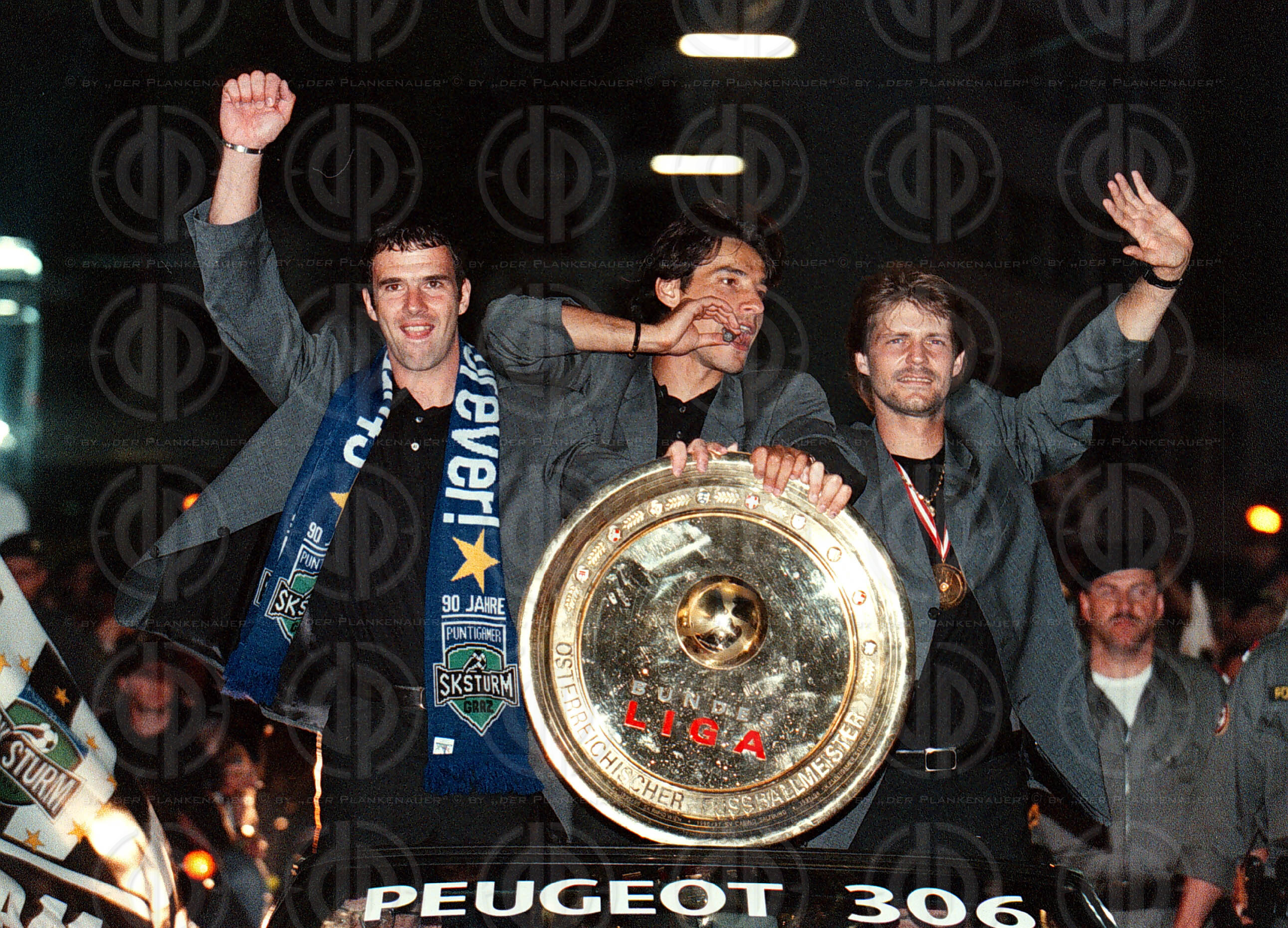 Autocorso, links Mario Haas, Mitte Ivica Vastic, rechts Hannes Reinmayr mit dem Meisterteller
