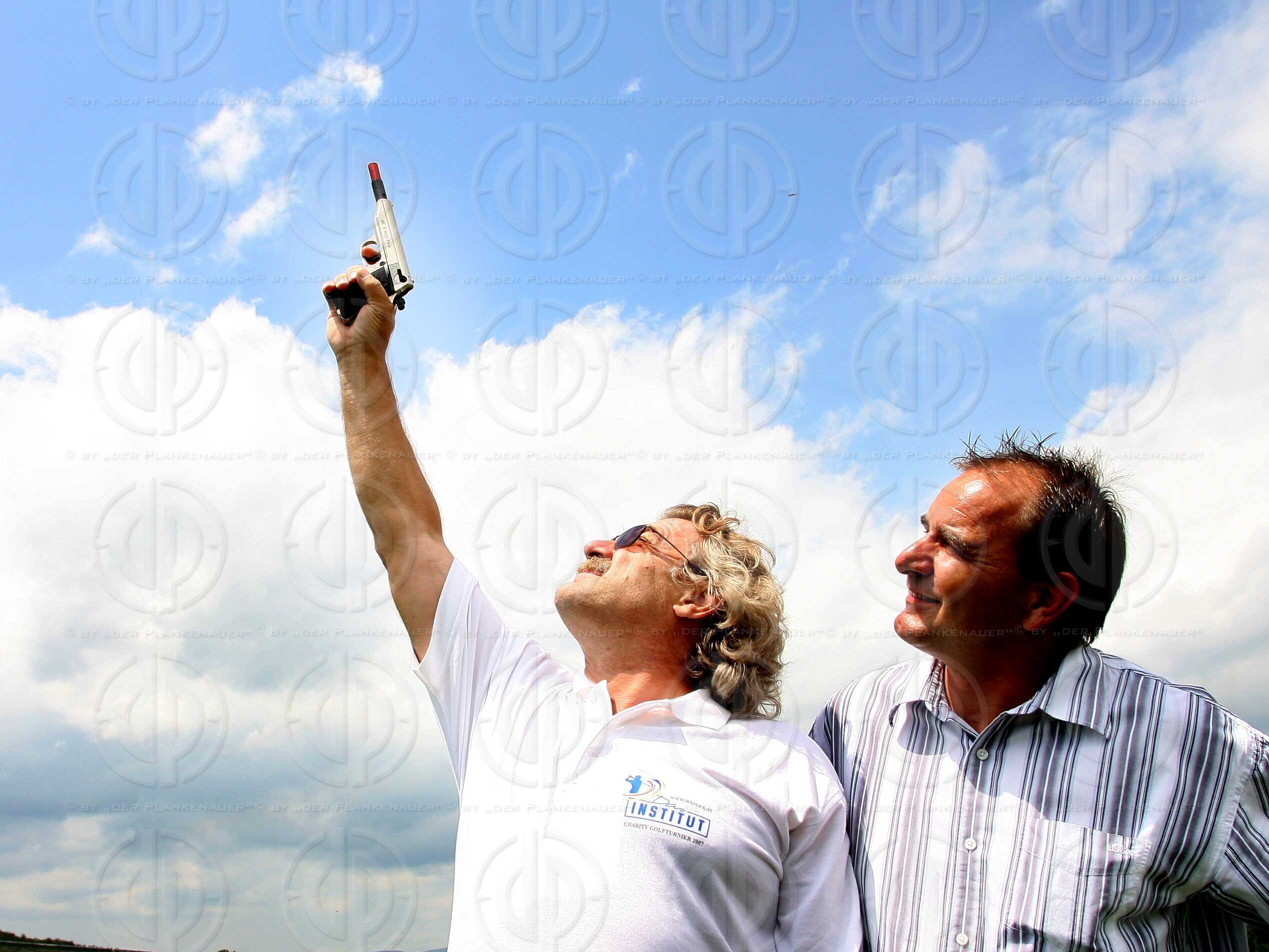 Bild zeigt: Start zum Turnier mit Kanonenschuss. V.l. Dr. WASLER, Dir. Jörg PUMMER Raika Graz-St.Peter.