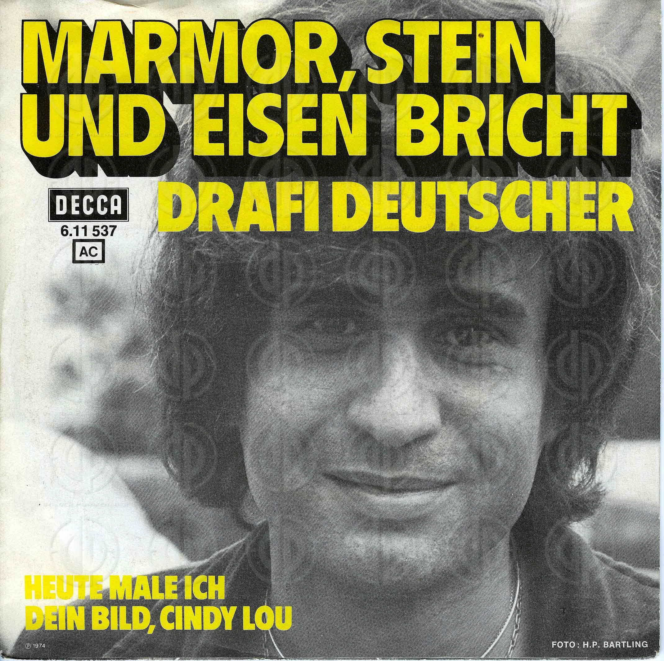 Der deutsche Sänger Drafi DEUTSCHER brachte 1965 den Hit Marmor Stein und Eisen bricht heraus. Deutscher verstarb am 09.06.2006 im Alter von 60 Jahren.