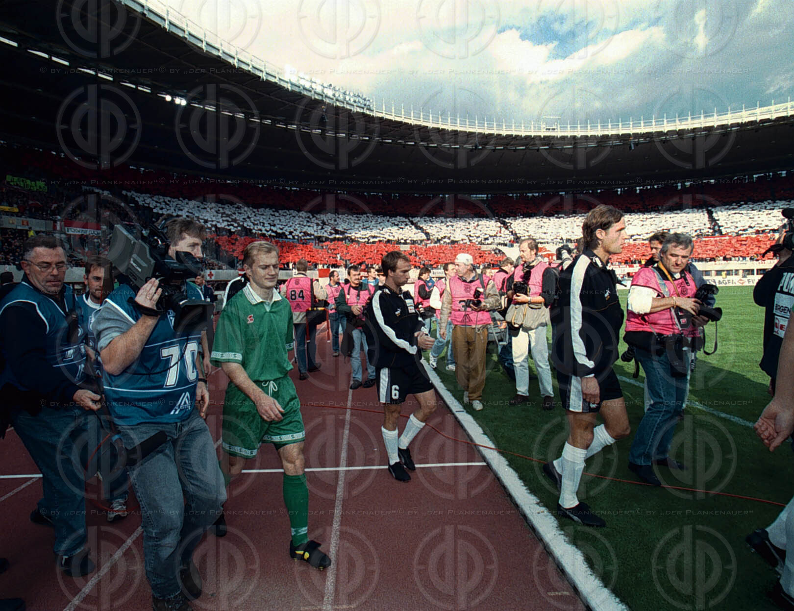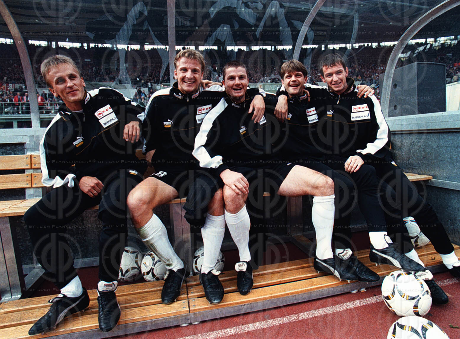 von links Peter Stöger, Opus-Musiker Pfleger, Harald Cerny, Markus Schopp, Martin Hiden, Heimo Pfeifenberger, Andi Herzog und Roman Mählich