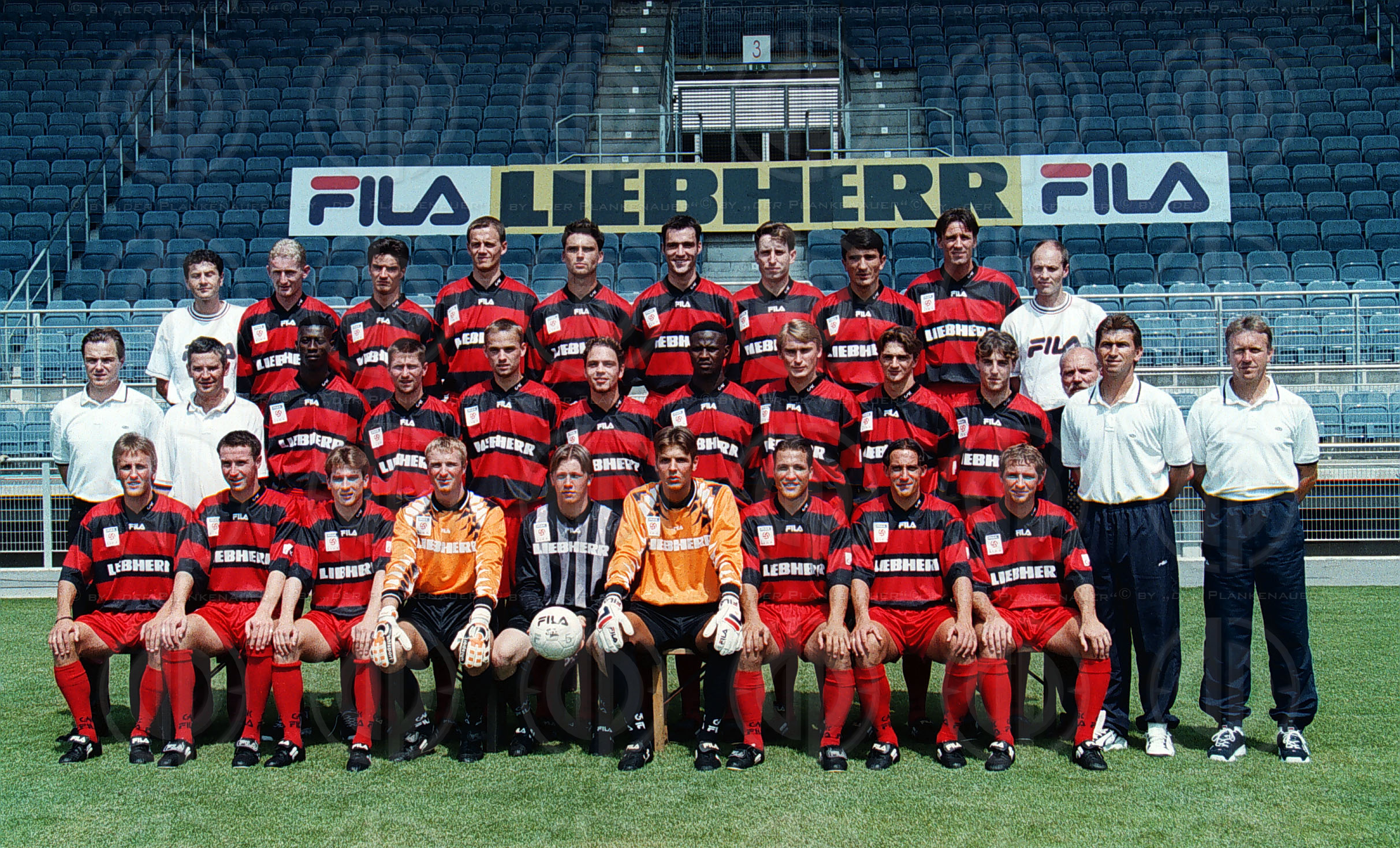 Vizepräsident Peter SVETITS, Präsident Harald FISCHL, Eric AKOTO, Jürgen HARTMANN, Gernot SICK, Andreas RAUSCHER, Benedict AKWUEGBU, Lubomir LUHOVNY, Ewald BRENNER, Joachim STANDFEST, Arzt Dr. Helmut BOHR, Trainer Klaus AUGENTHALER, Co-Trainer Rainer HÖRGL