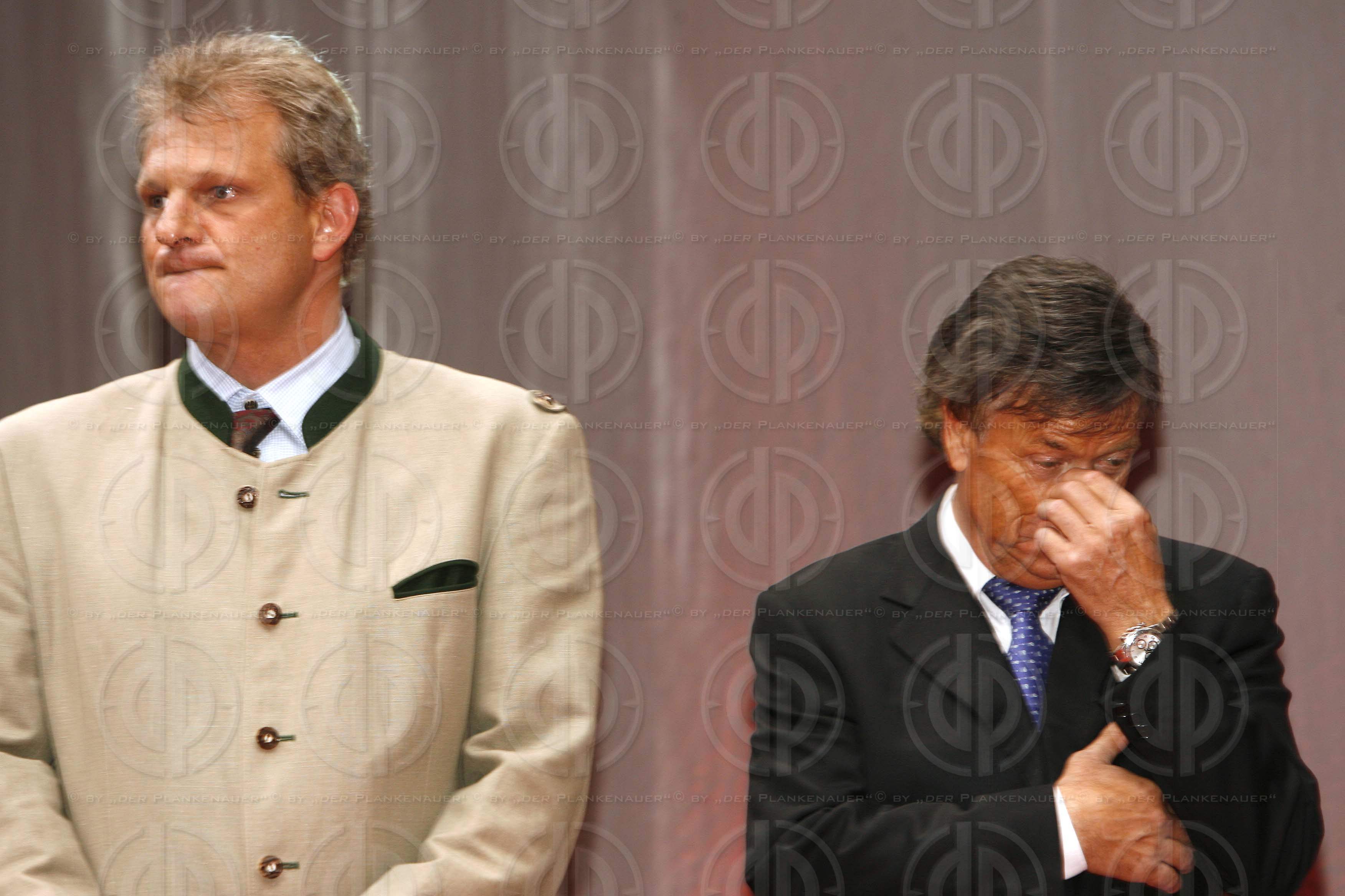 Bild zeigt: v.l. Günther SAGMEISTER (Kleine Zeitung Sportchef), ÖSV-Präs. Peter SCHRÖCKSNADEL etwas verbissen.