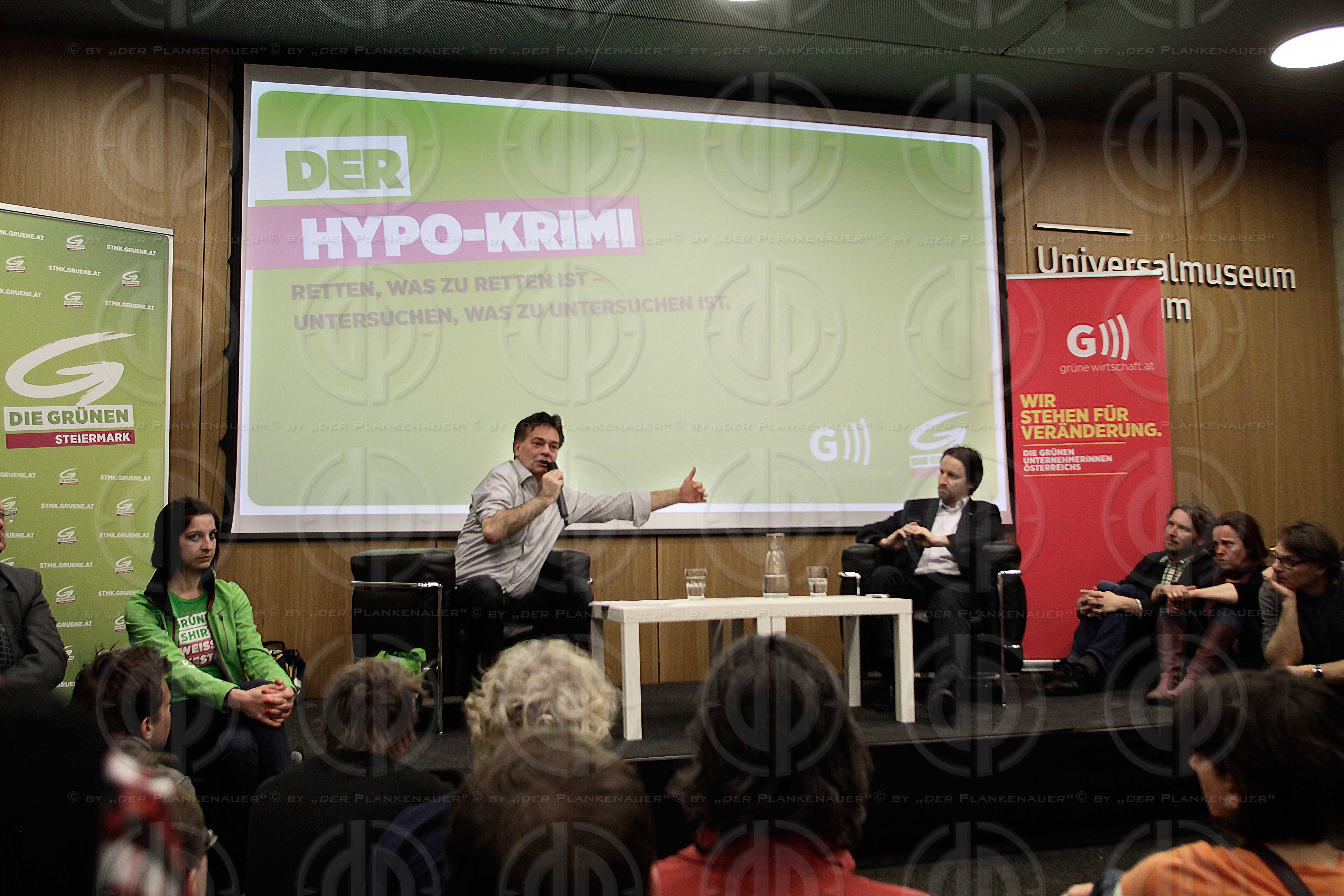 Hypo-Krimi-Tour, Informationsveranstaltung der Gruenen zum Thema Skandal um die Hypo Alpe Adria Bank mit Werner KOGLER am 19.03.2014.