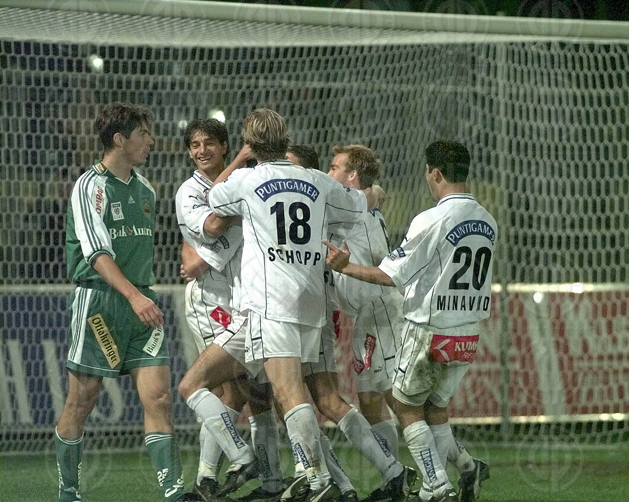 Objektbeschreibung: Torjubel von links Minavand, Martens, Mählich, Prilasnig, Szabics, Schopp