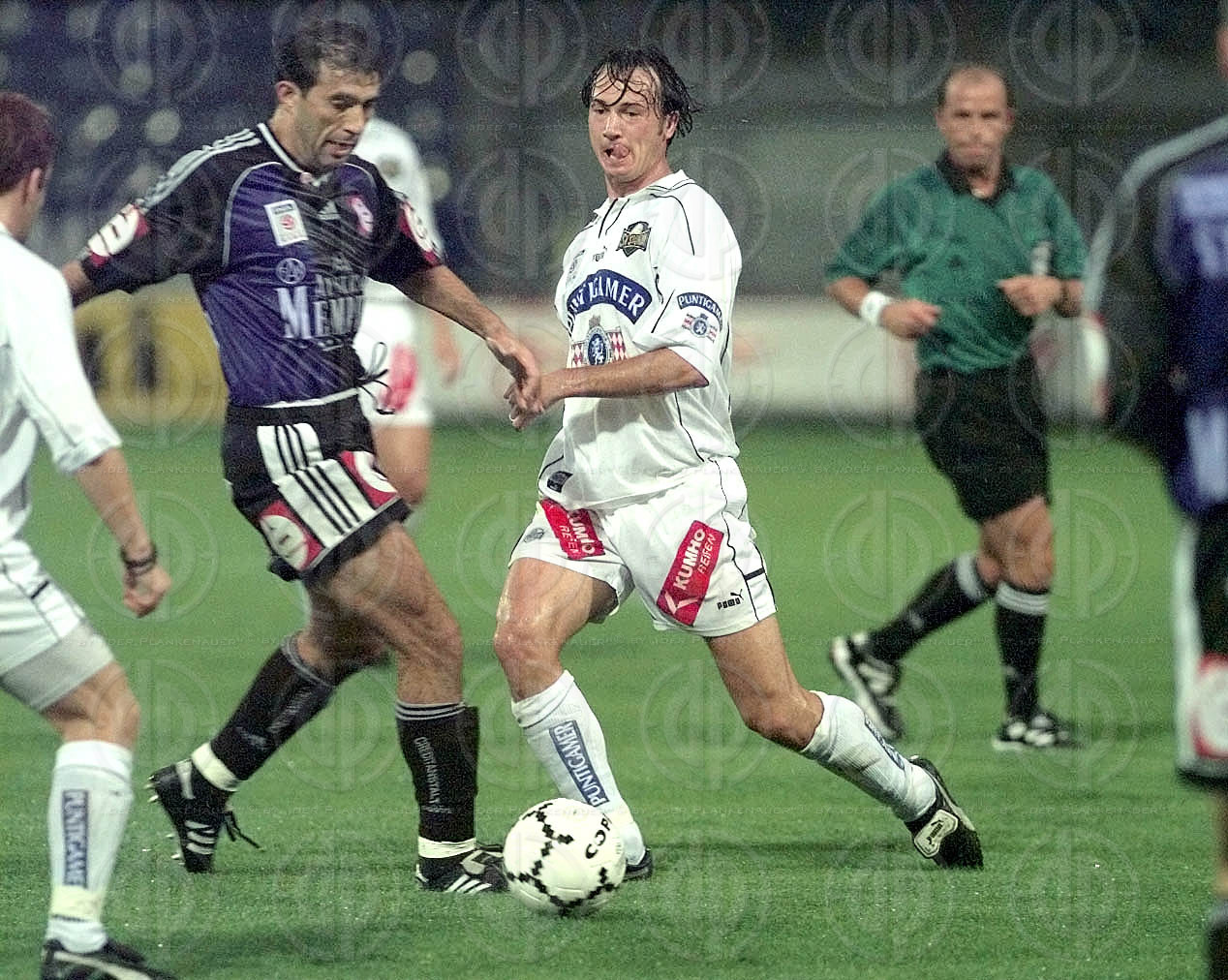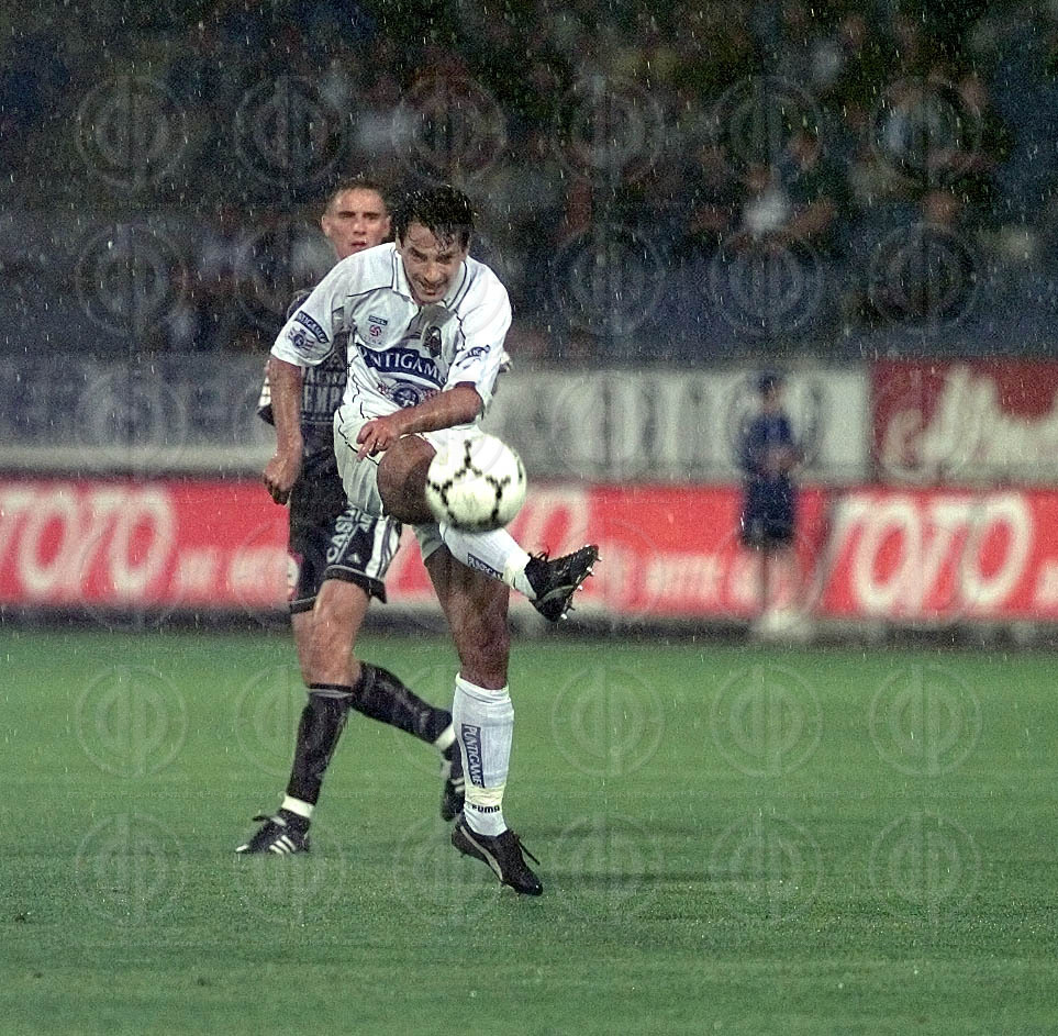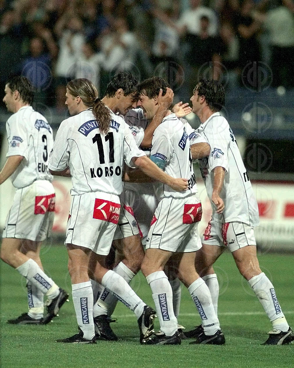 Objektbeschreibung: Torjubel, von links György Korsos, Ivica Vastic, Hannes Reinmayr und Gerald Strafner.