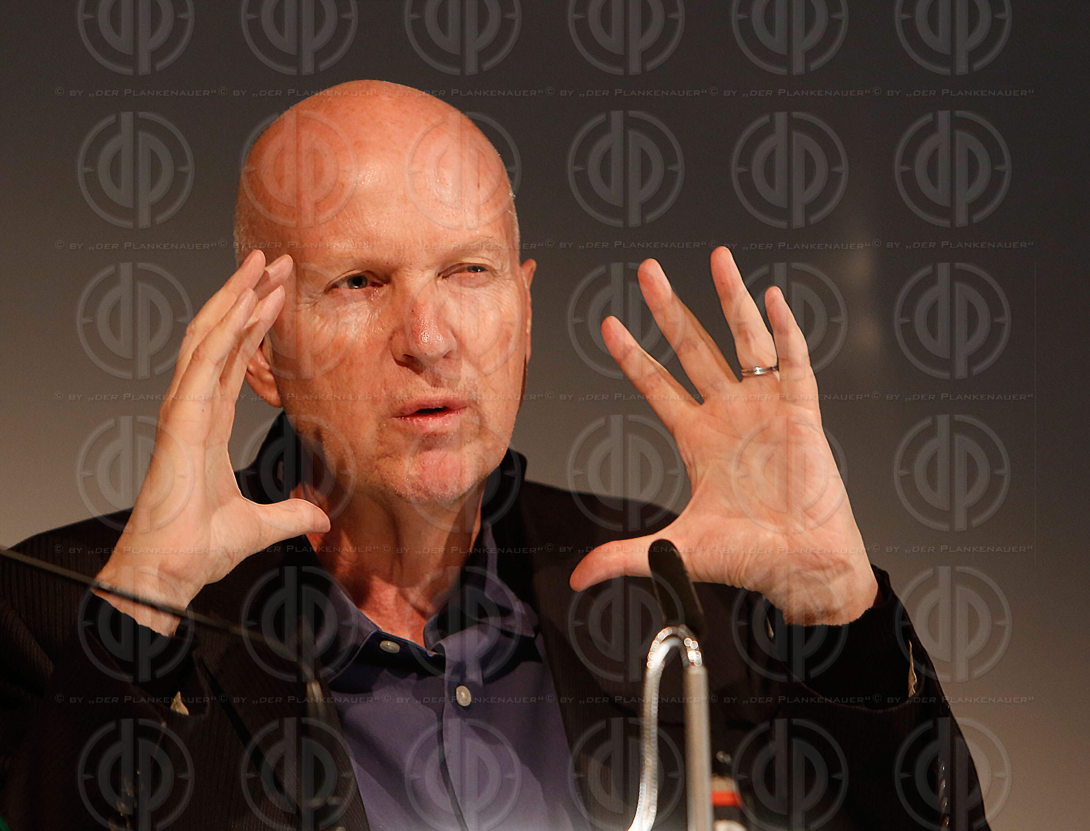 Jean-Philippe TOUSSAINT liest aus seinem Buch Fussball. Moderator Mag. Johann SKOCEK, Dolmetscher Helmut MOYSICH, am 24.05.2016.