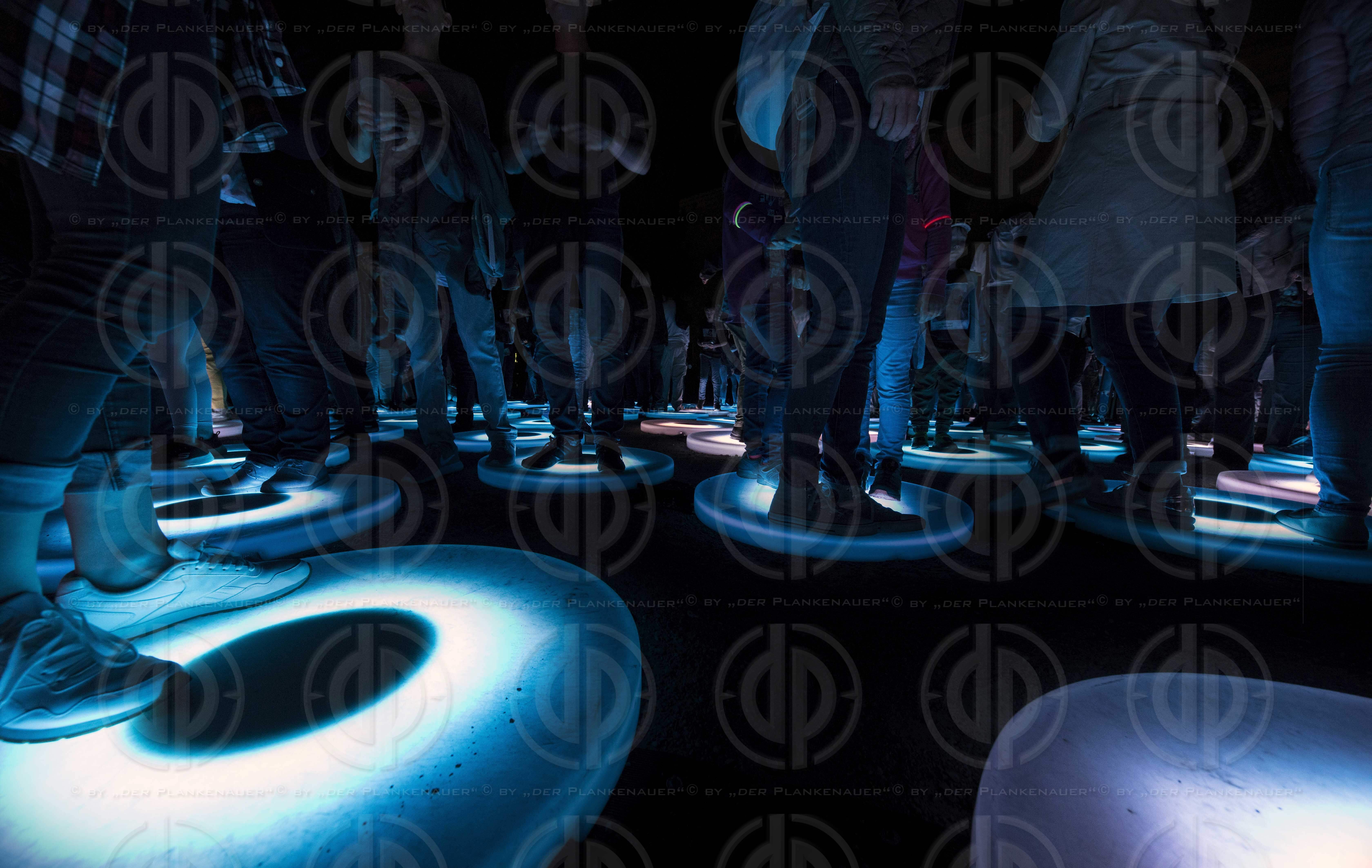 Bild zeigt: v.l. Menschen malen mit Licht auf Pads in The Pool von Jen Lewis.