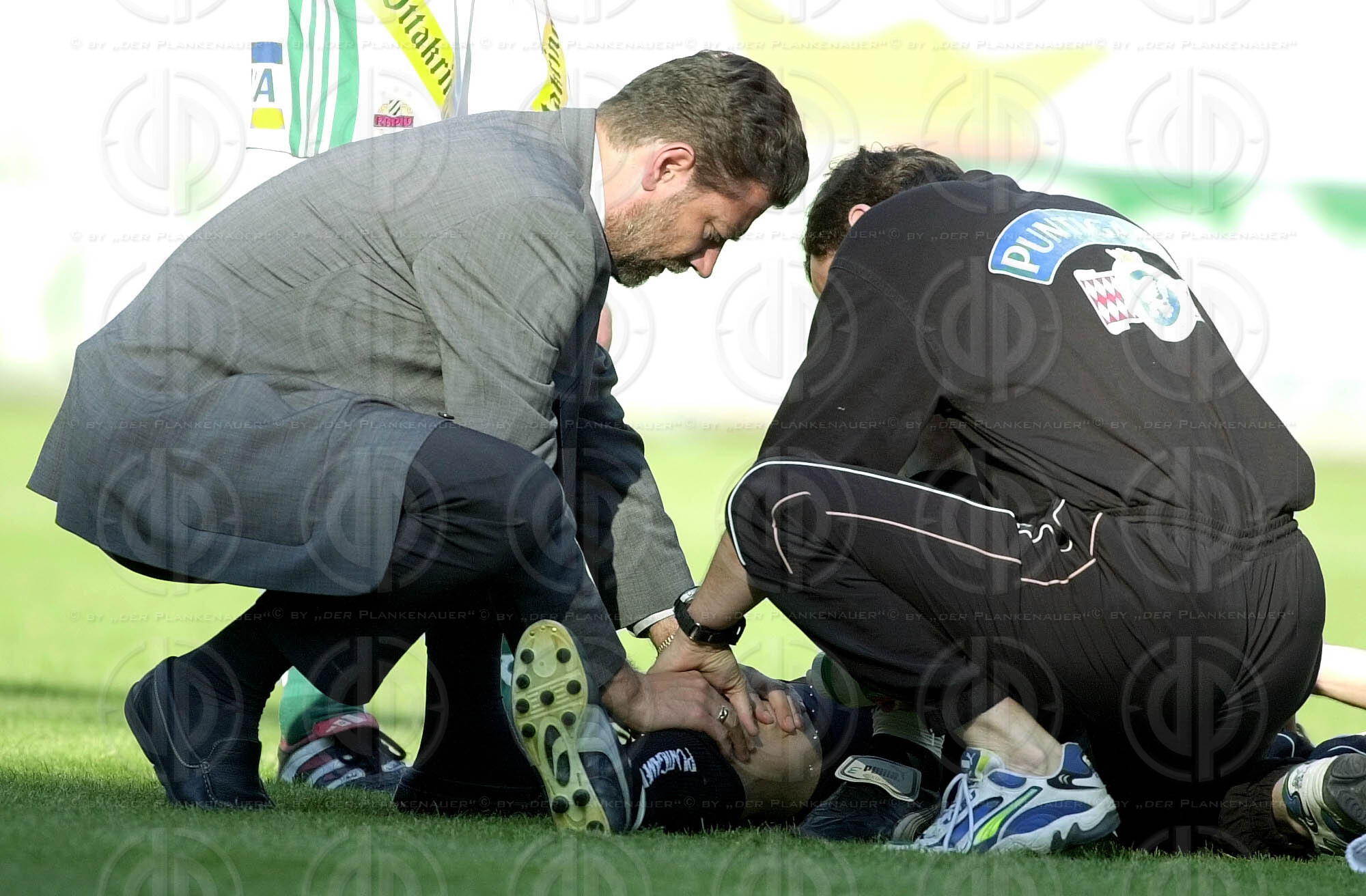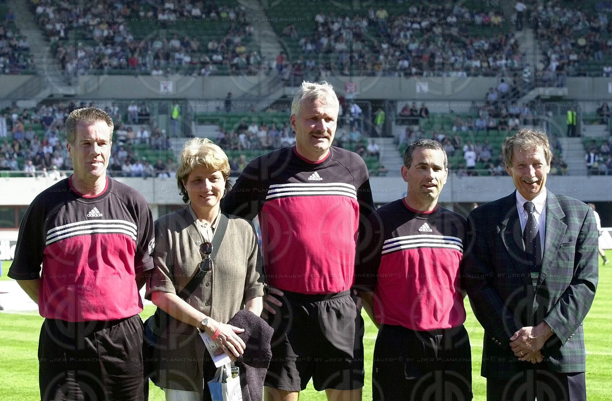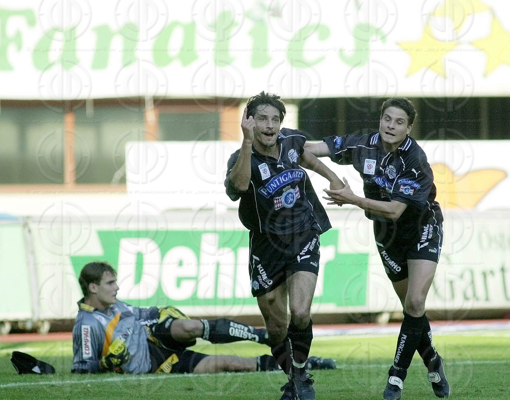 Objektbeschreibung: von links Jens Dowe, Farhad Majidi, dahinter Tormann Raimund Hedl, Ivica Vstic, dahinter Michael Hatz, Günther Schiesswald
