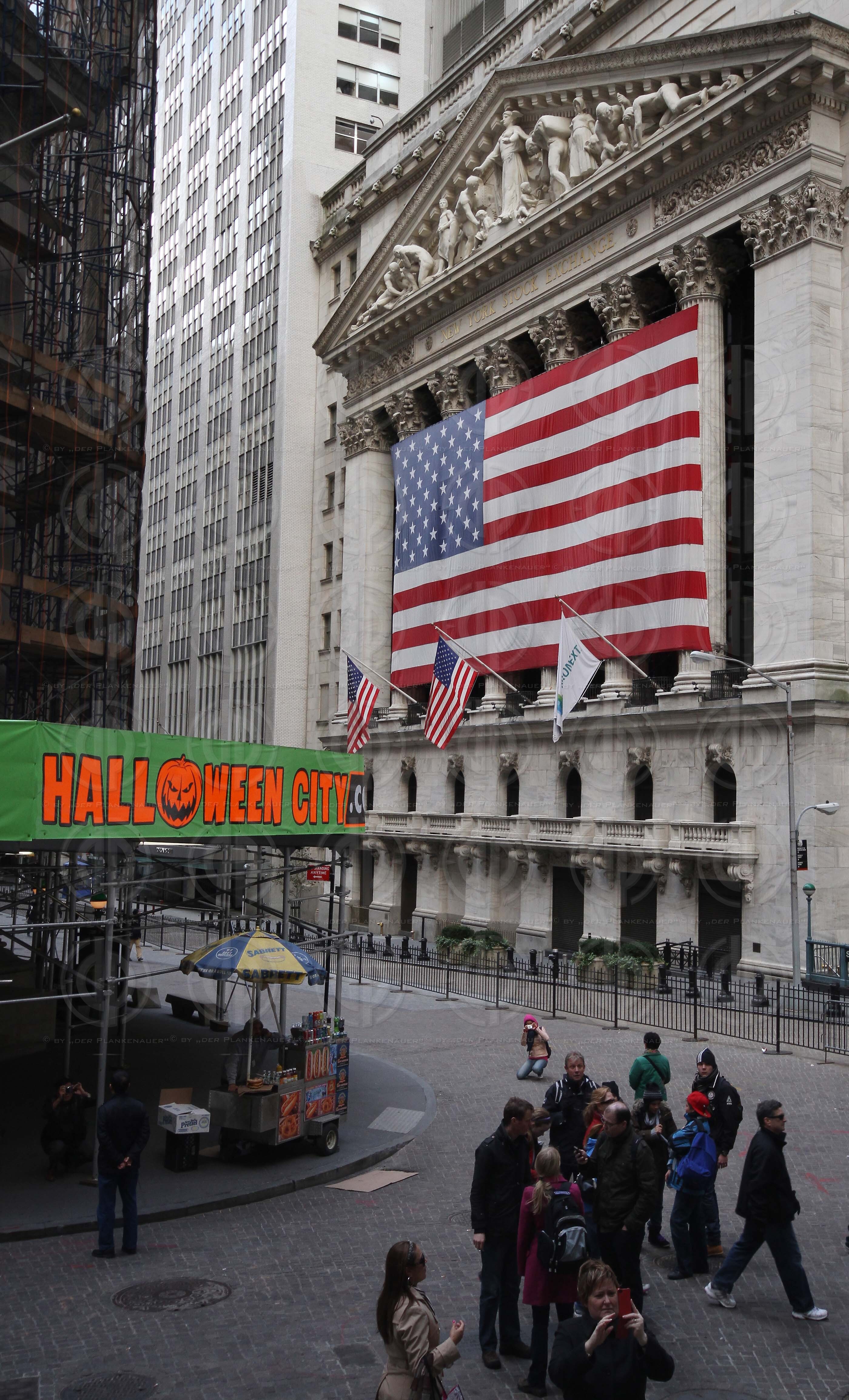 Bild zeigt: v.l. New York Stock Exchange (Börse) in der Wall Street.