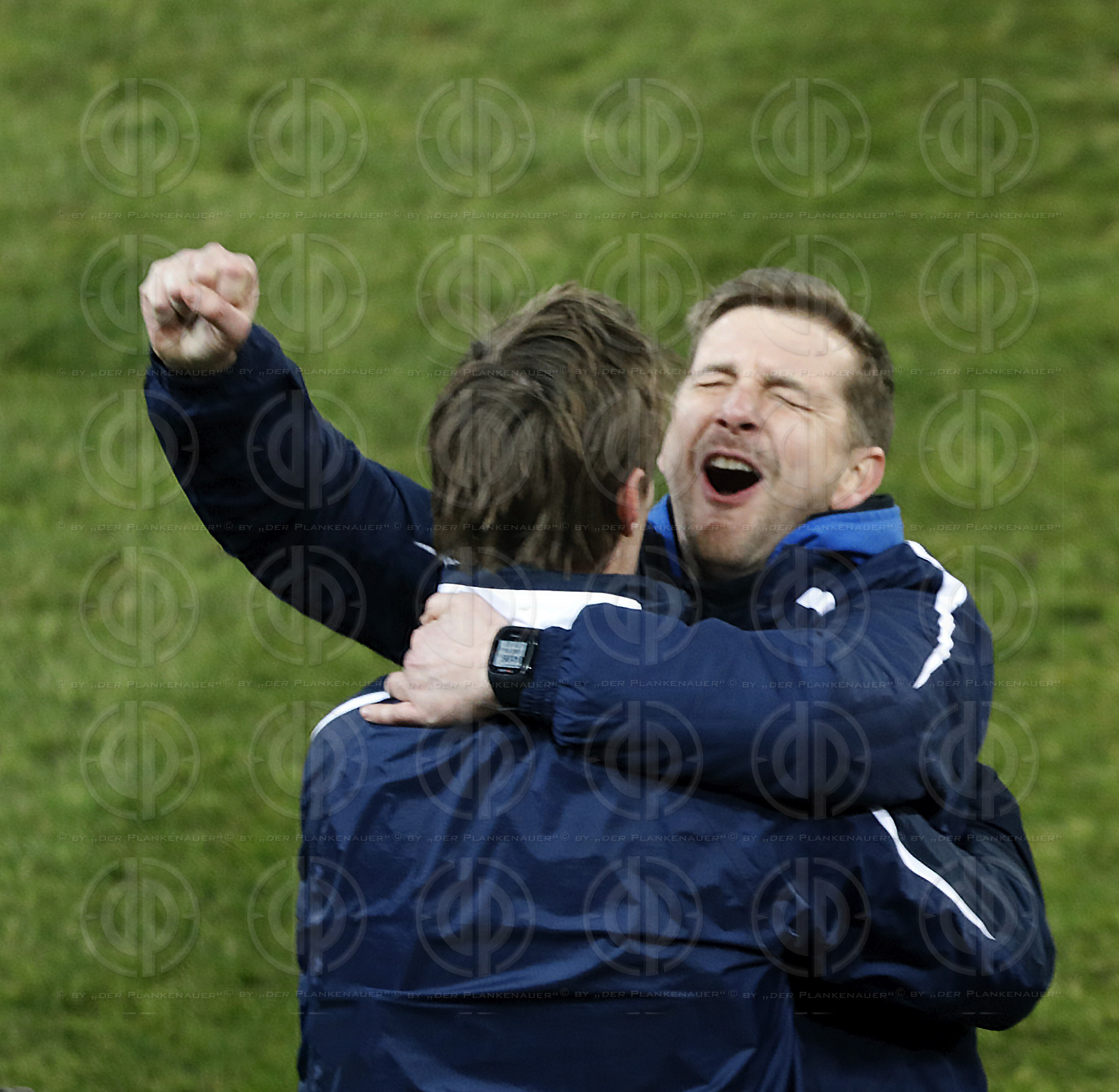 Bild zeigt: v.l. Trainer Ralph SPIRK, David PREISS (Preiß) Jubel nach dem 2:1 Sieg.