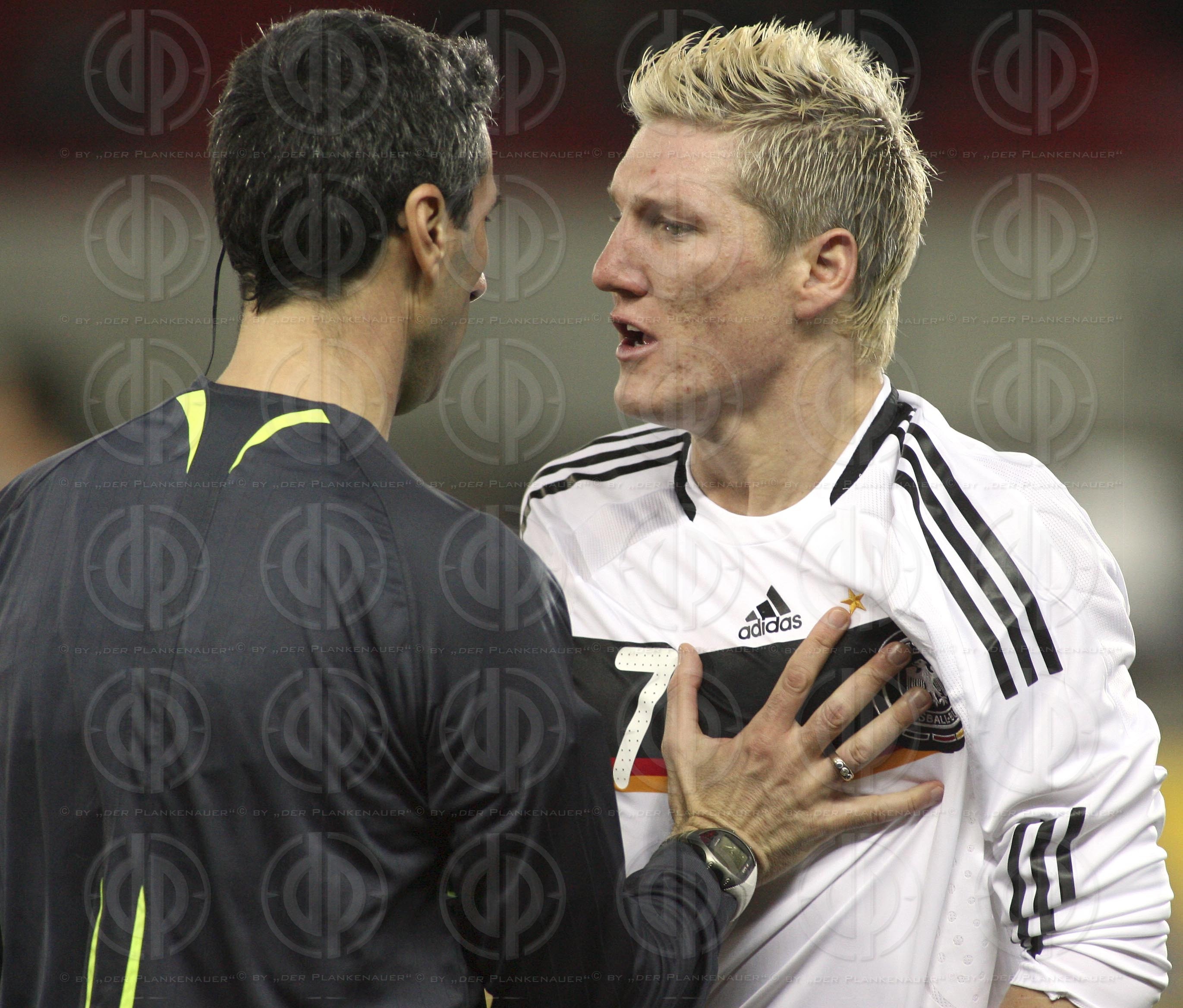 Bild zeigt: v.l. Schiedsrichter Paolo DONDARINI, Bastian SCHWEINSTEIGER.