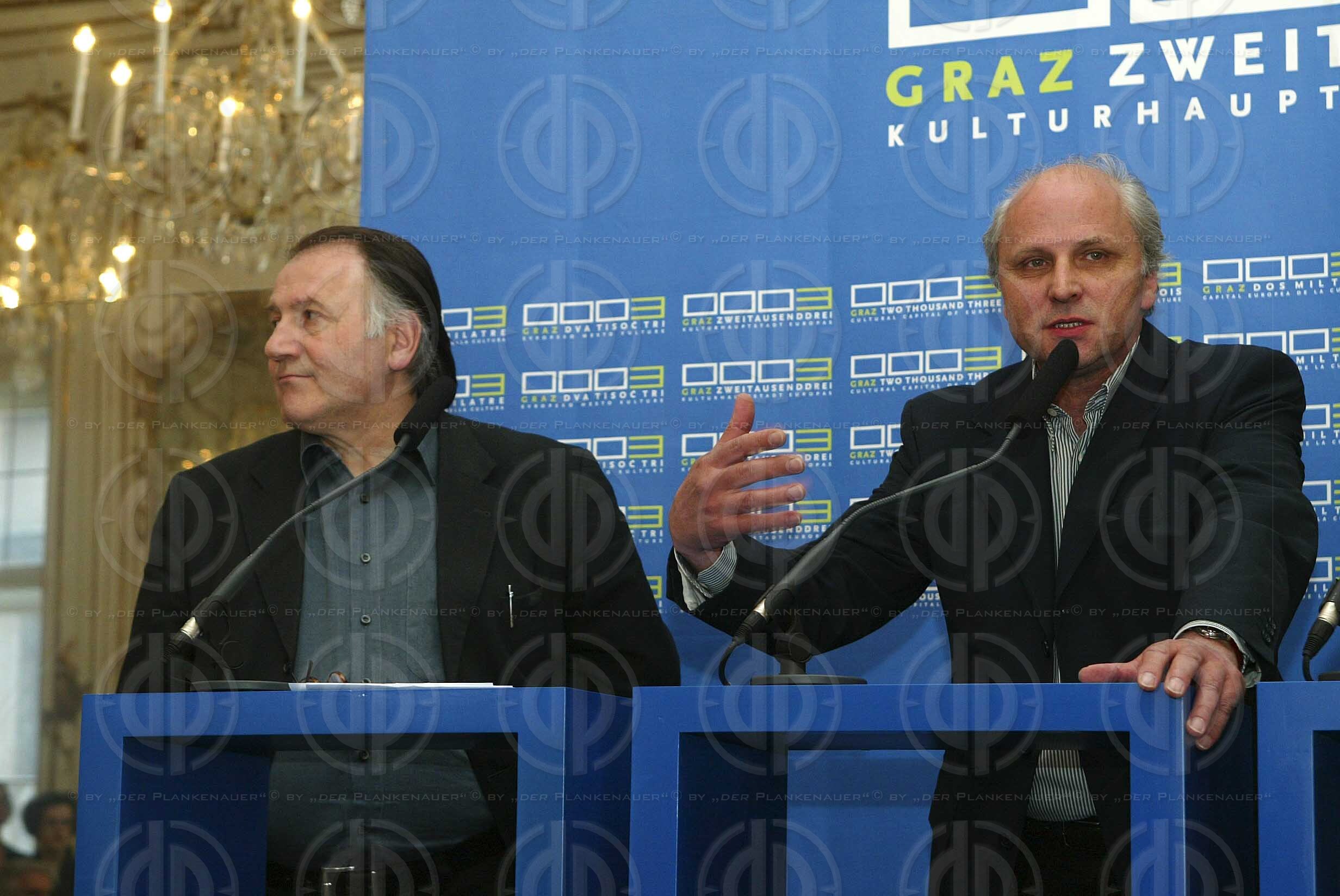 Bild zeigt v.l. Kurator Peter Weibel, Intendant Wolfgang Lorenz