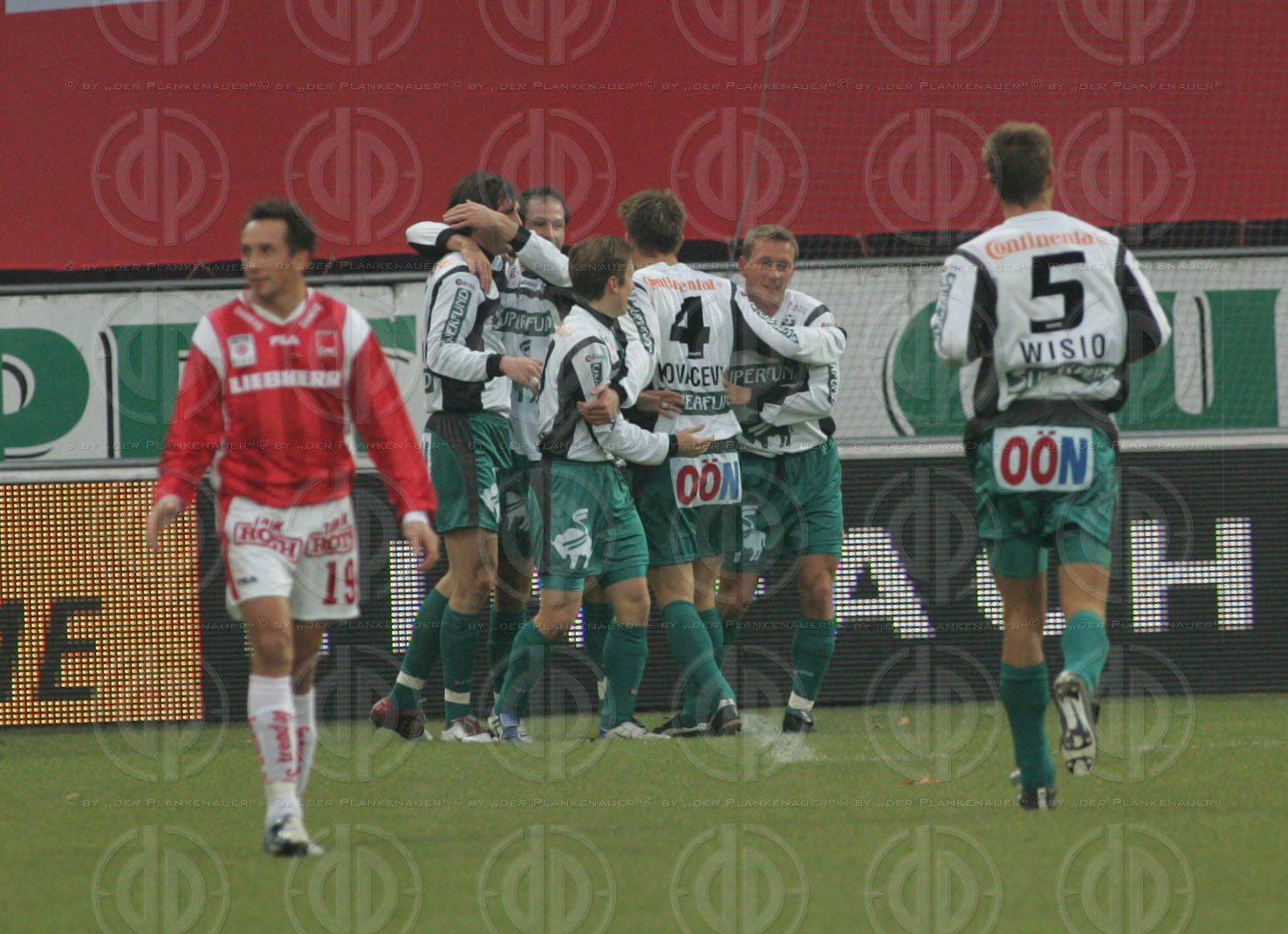 Bild zeigt: v.l. Matthias DOLLINGER, Thomas PICHLMANN, Torschütze Roland KIRCHLER, Patrick JEZEK, Bozo KOVACEVIC, Christian MAYRLEB, Tomasz WISIO.