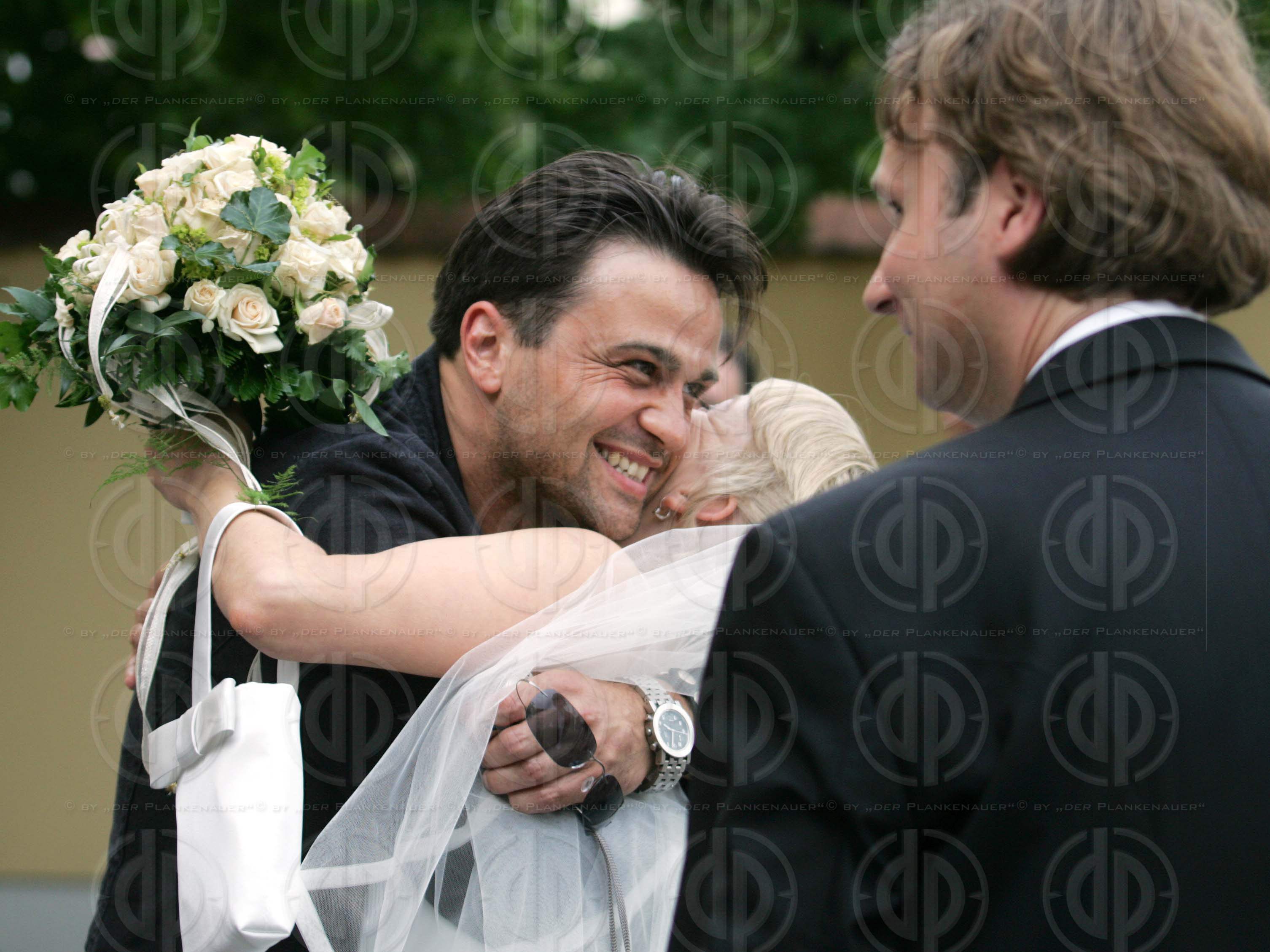 Hochzeit am 4.06.2005 - Eva HERZIG und Michael KÖNIG grüßen als Vermählte.