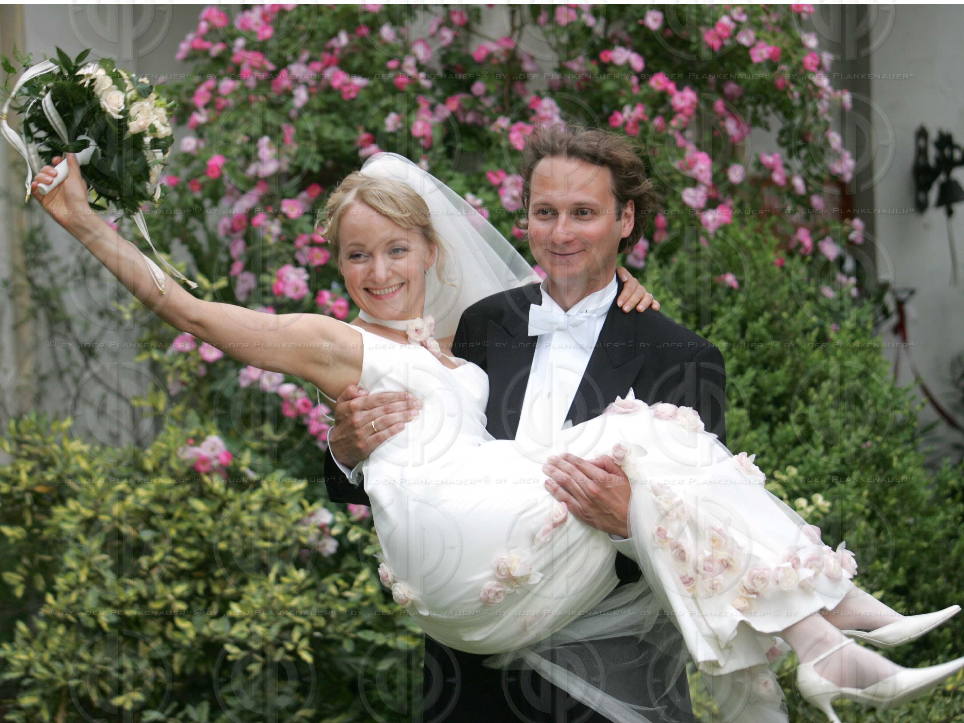 Hochzeit am 4.06.2005 - Eva HERZIG und Michael KÖNIG grüßen als Vermählte.