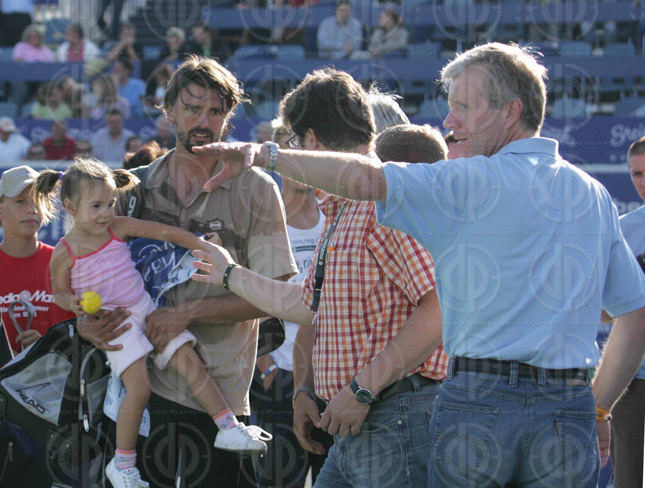 Bild zeigt: v.l. Goran IVANISEVIC mit Tochter Marie Amber, Mag. Karl-Heinz WIESER, VV GD Dr. Gerhard FABISCH.