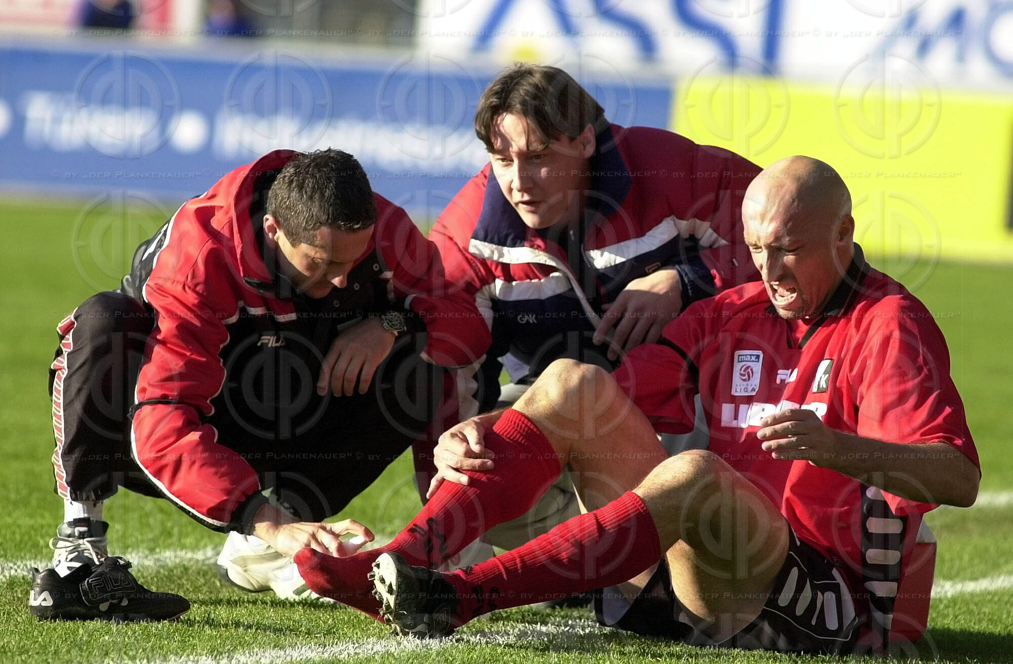 Objektbeschreibung: von links Benedict Akwuegbu, Gernot Sick, Tormann Ladislav Maier