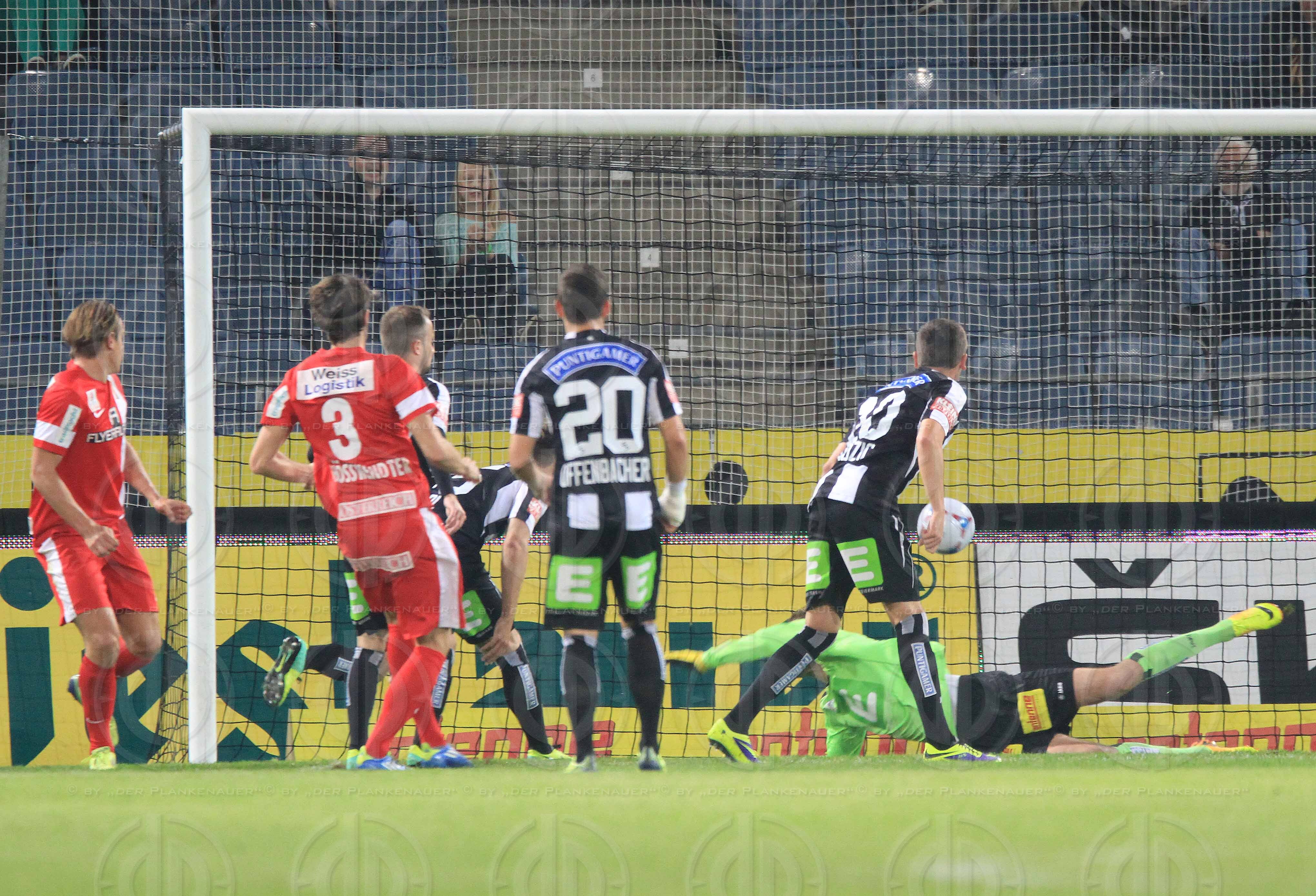 Bild zeigt: v.l. Tor zum 0:1 durch 3 Christoph SCHÖSSWENDTER, Tormann PLIQUETT ist geschlagen.