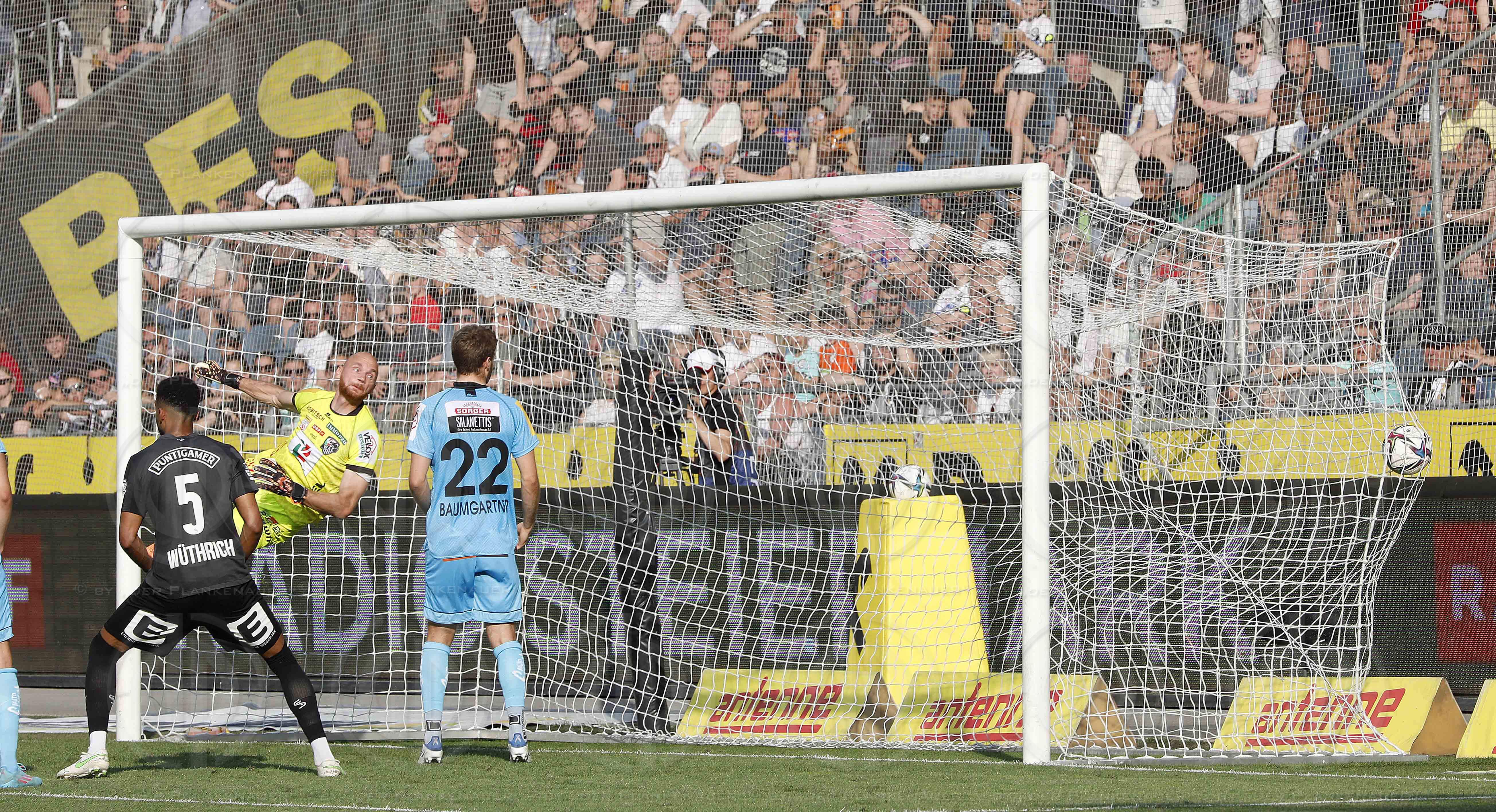 Bild zeigt: v.l. WÜTHRICH, Tormann KOFLER, BAUMGARTNER, Tor zum1:3 durch LJUBIC.