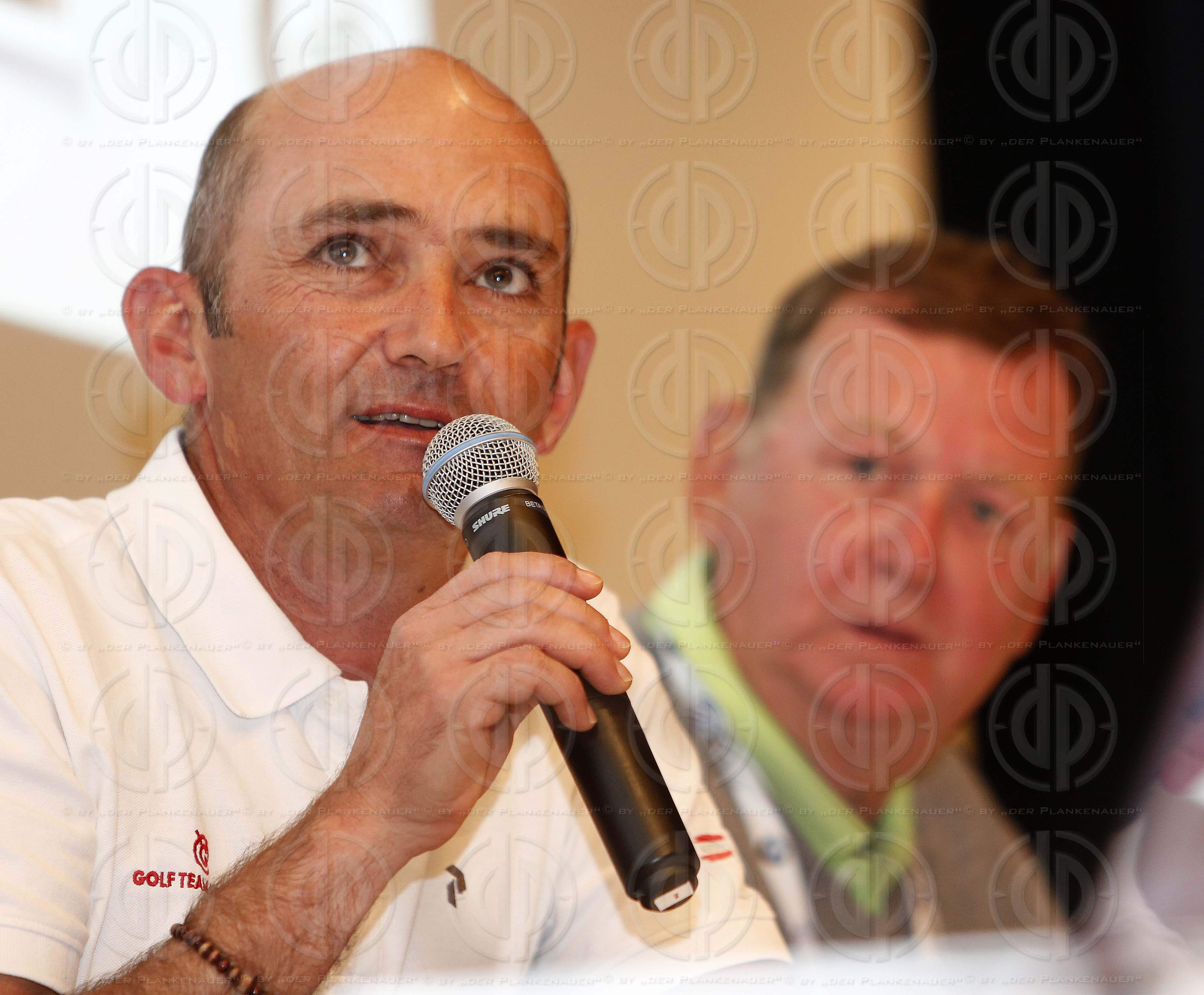 p201605109911.jpgJahrestagung der SportsMediaAustria in Fieberbrunn-Hochfilzen am 10.05.2016.Bild zeigt: v.l. Golf mit Markus BRIER, Moderation August KUHN.