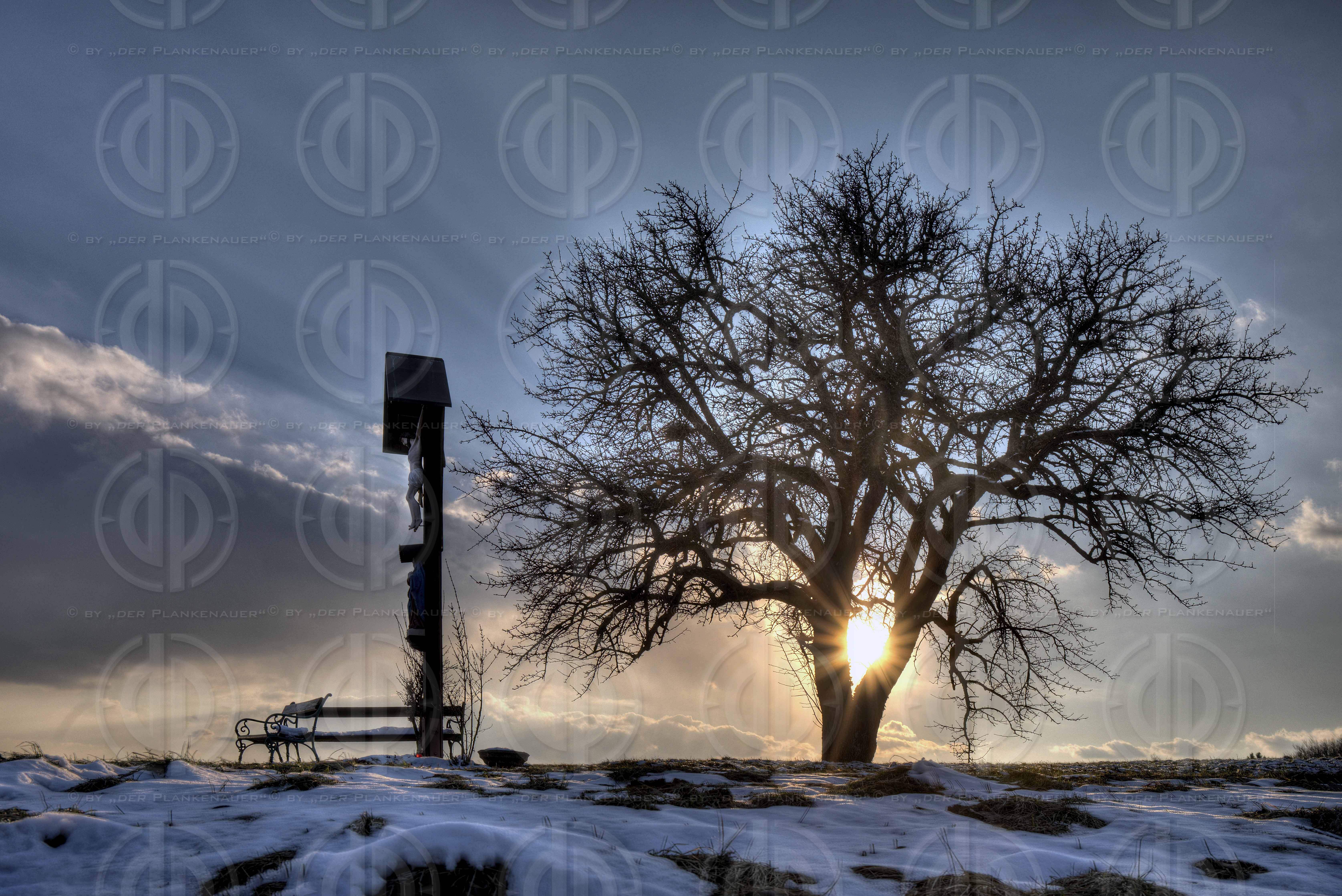 Bild zeigt: Marterl in Kainbach/Schillingsdorf zu Fruehlingsbeginn bei Sonnenuntergang