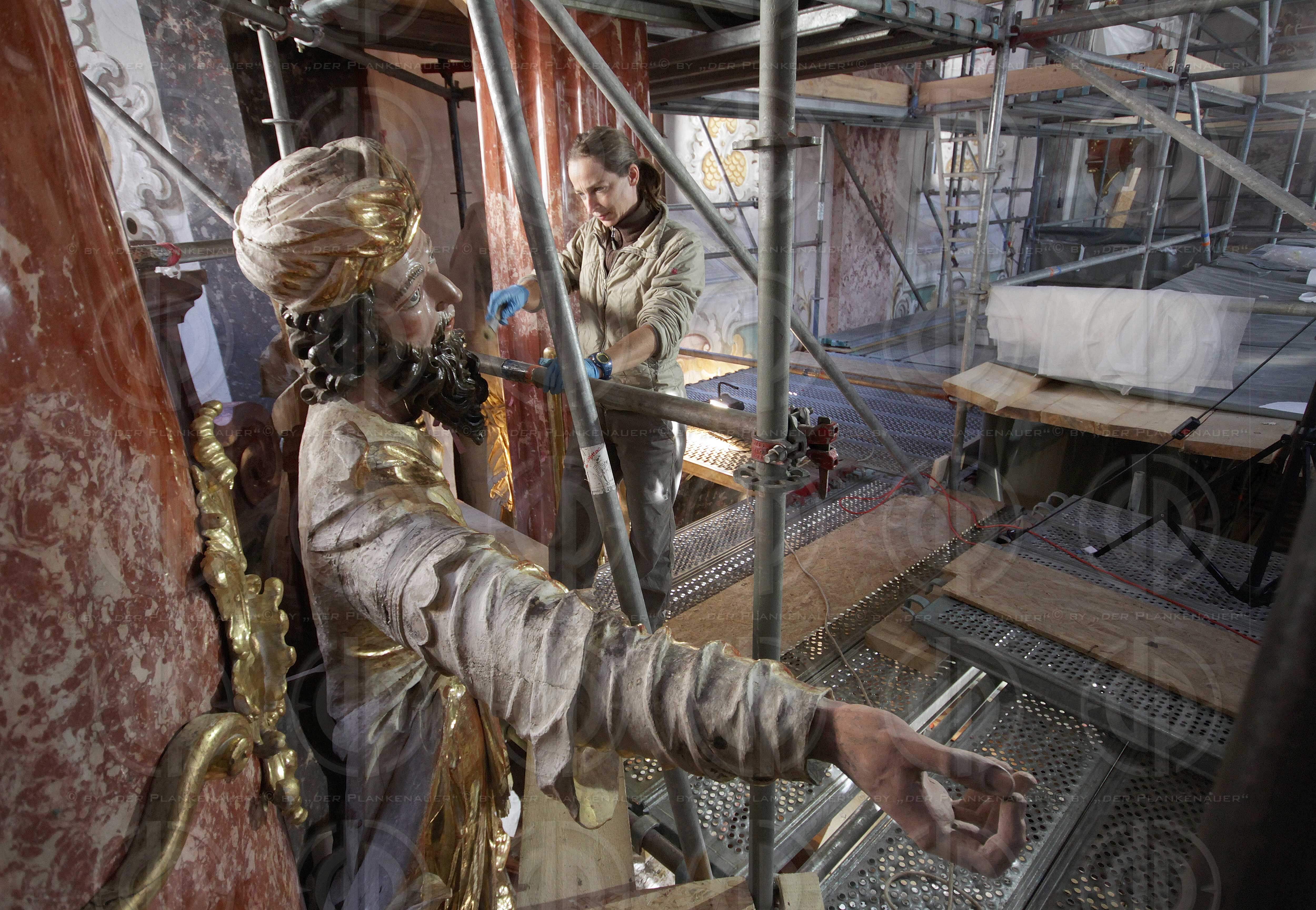 Renovierung im Stift Rein am 25.10.2013. Bild zeigt: v.l. Restauratorin bei der Arbeit. Foto © by der Plankenauer