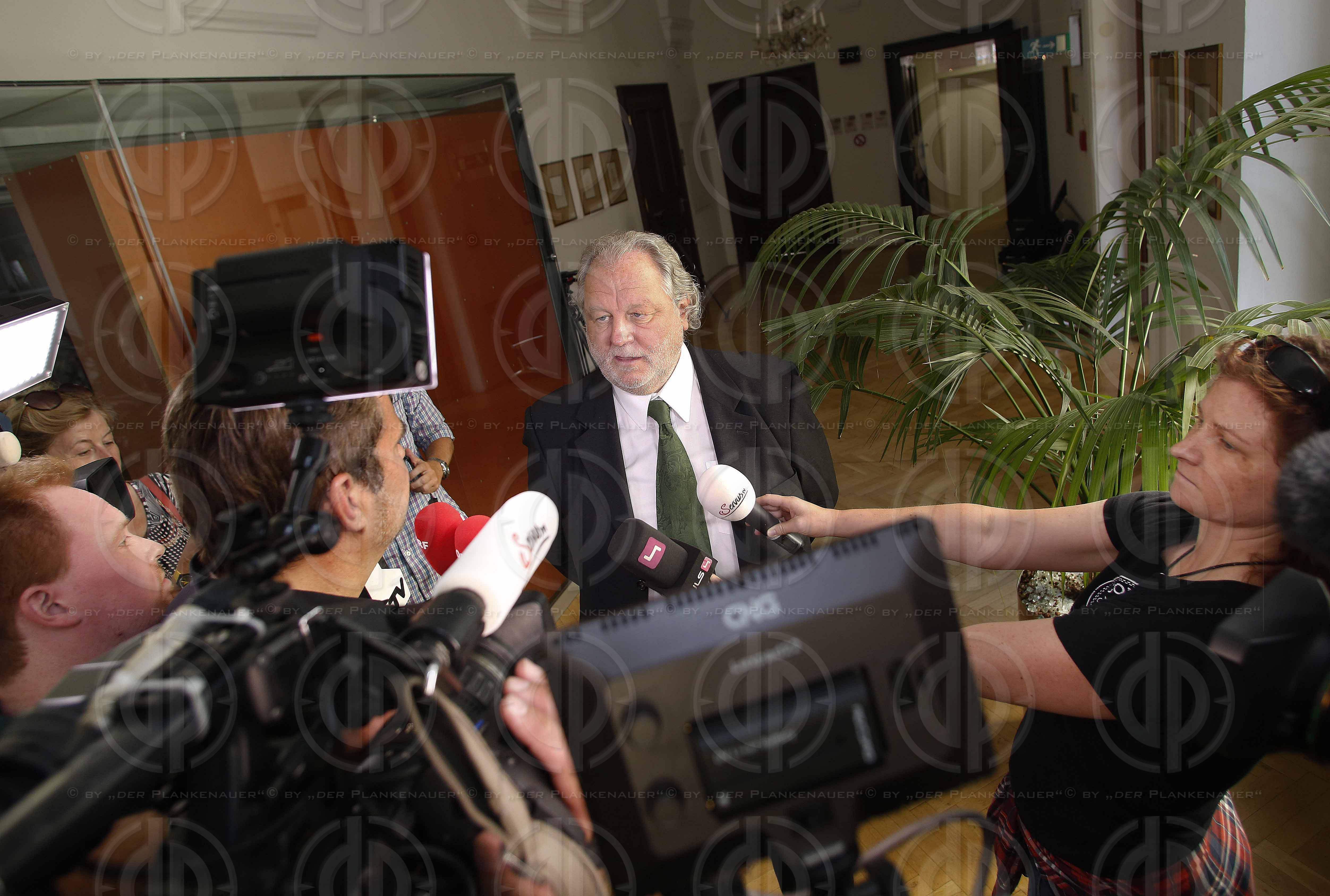 Bild zeigt: v.l. KARTNIG nach Urteilsverkuendung, Interviews.
