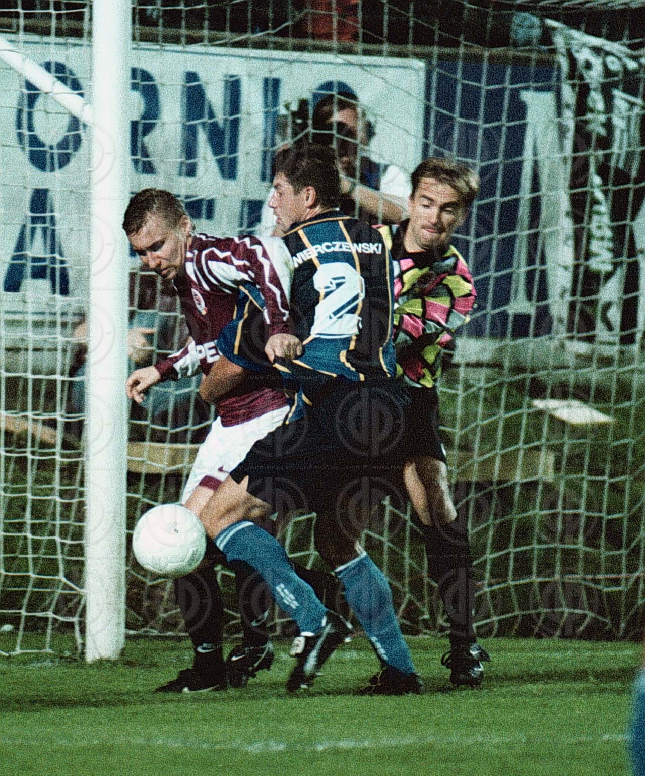 Horst Siegl kämpft mit Marek Swierczewski vor Tormann Ondruzka Ivan