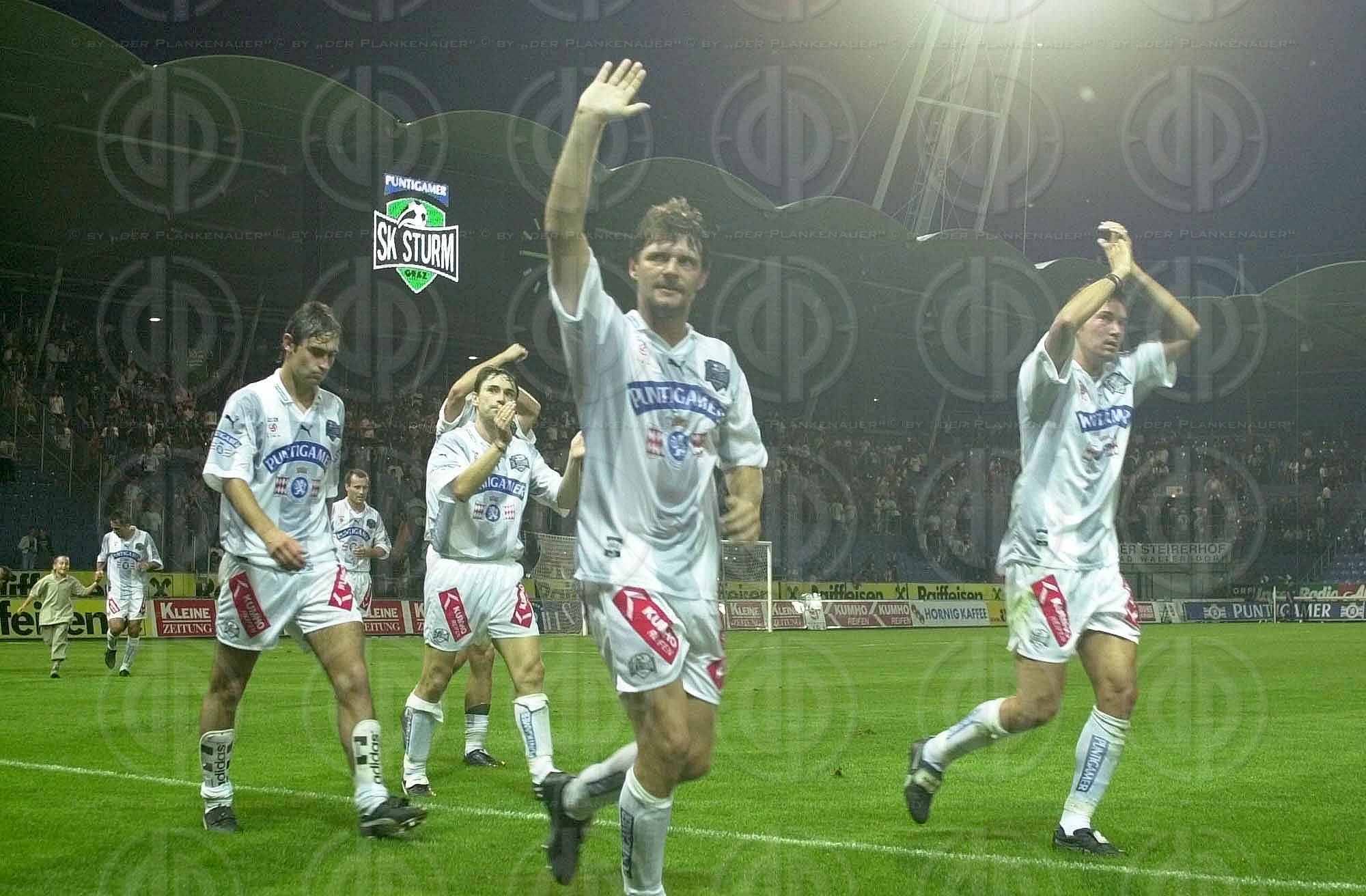 Objektbeschreibung: von links Tormann David Wimleitner, Torschütze zum 2:1 Ivica Vastic, Wolfgang Feiersinger, Jürgen Pichorner