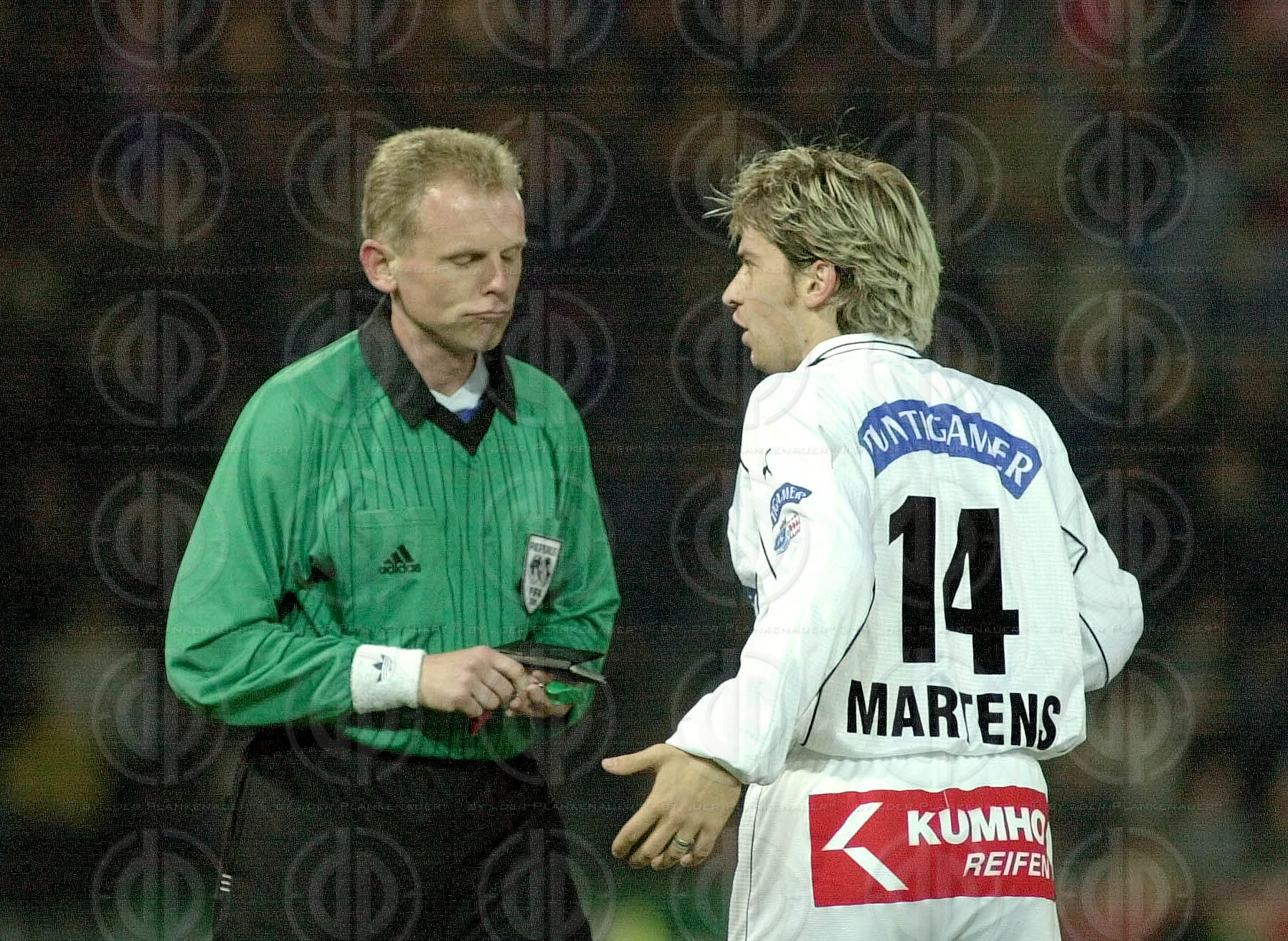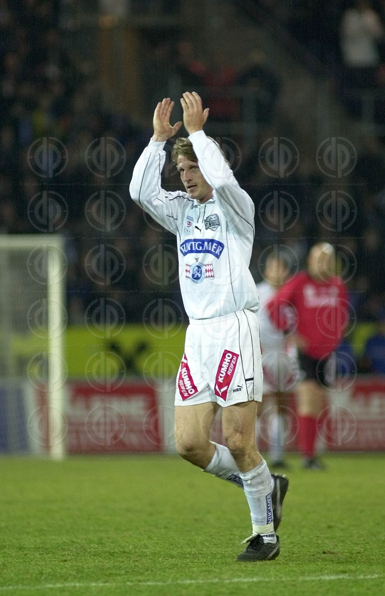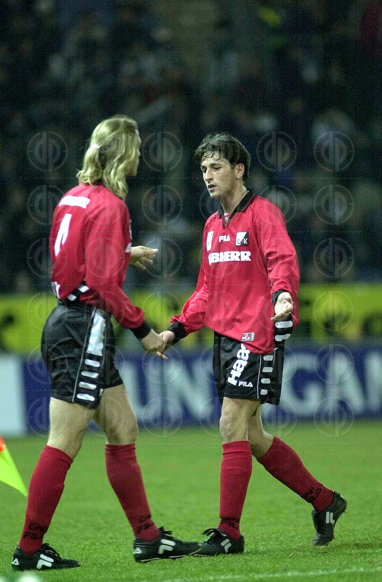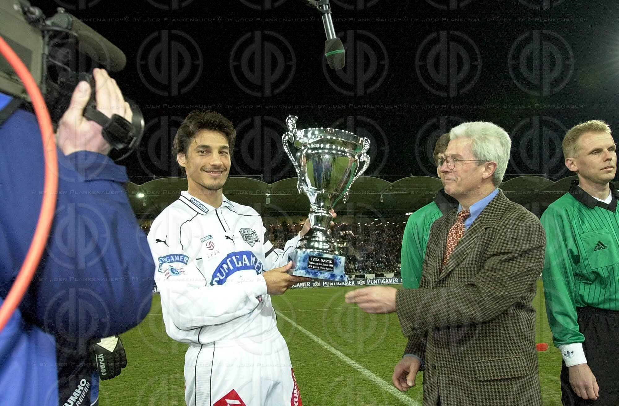 Objektbeschreibung: Tor durch Martin Amerhauser nach Fehler von Darko Milanic. Franco Foda und Andres Fleuquin schauen Tormann Josef Schicklgruber zu