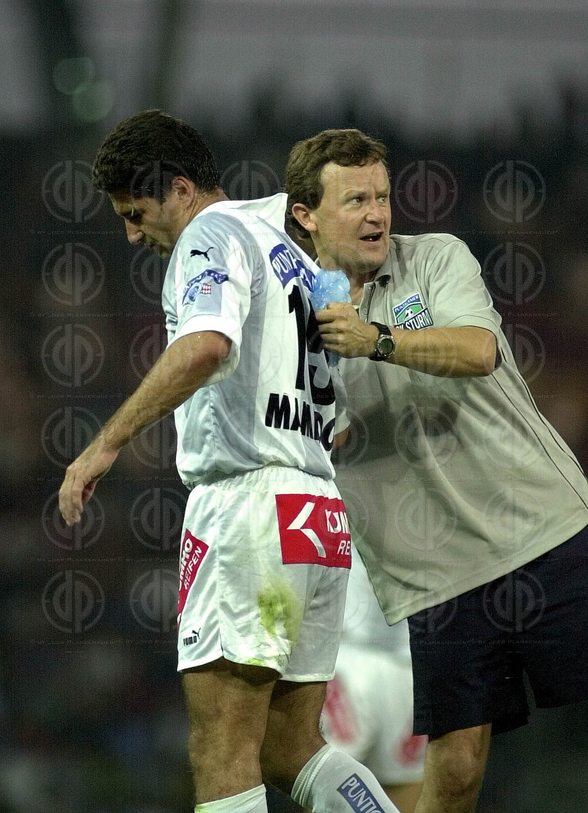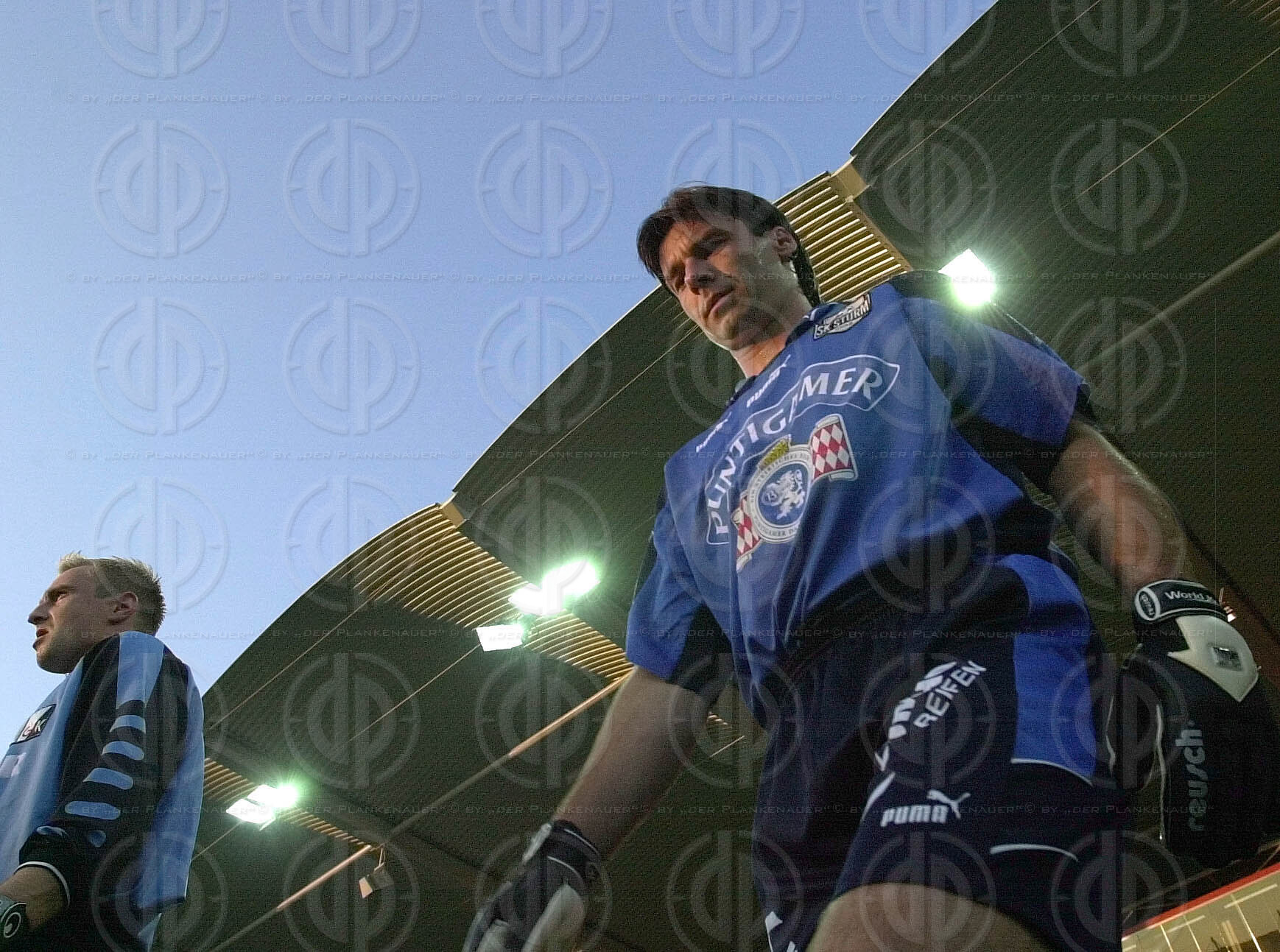 Die Tormänner Franz Almer und Josef Schicklgruber beim Einmarsch