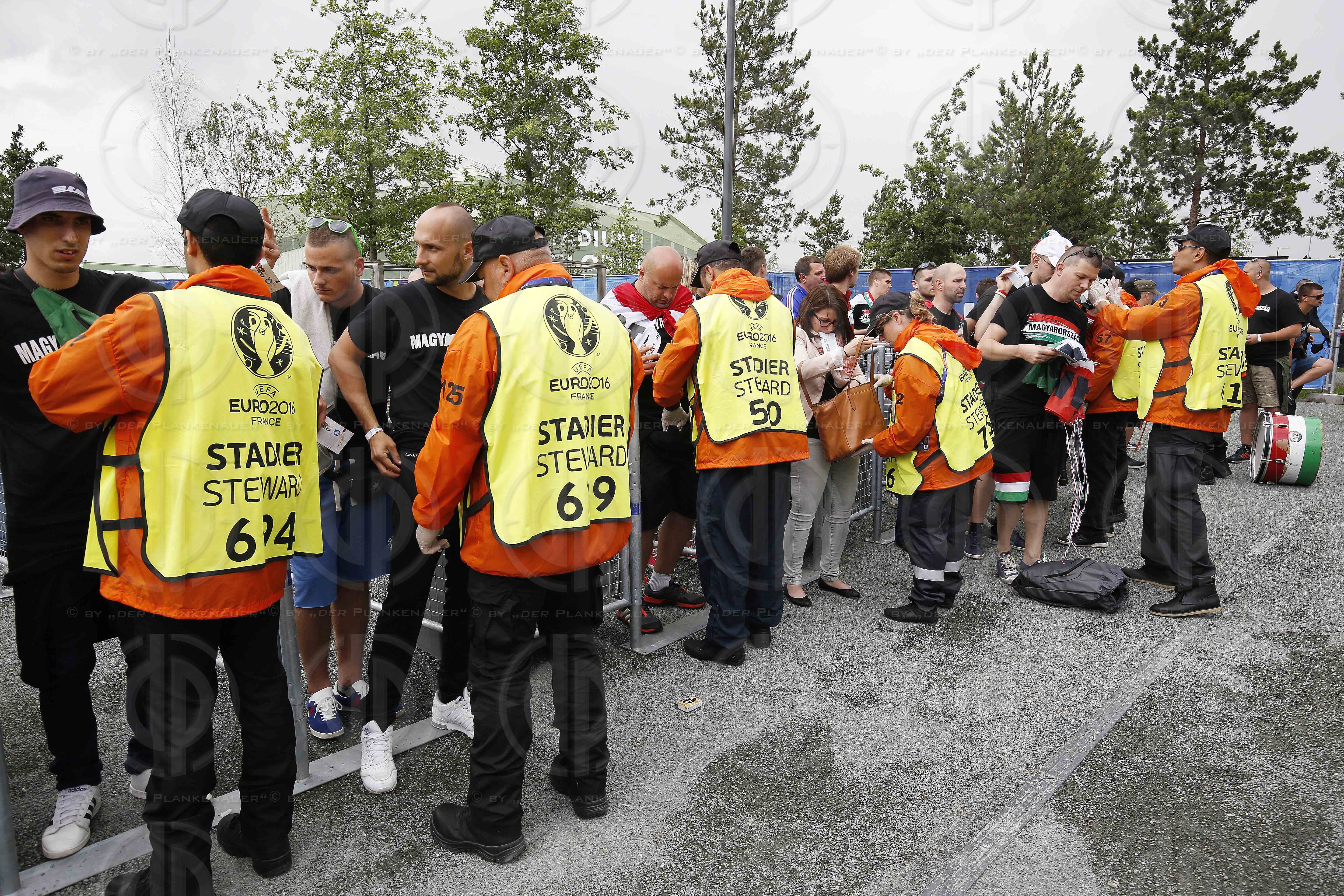 Bild zeigt: v.l. eine der Eingangskontrollen vor dem Stadion.
