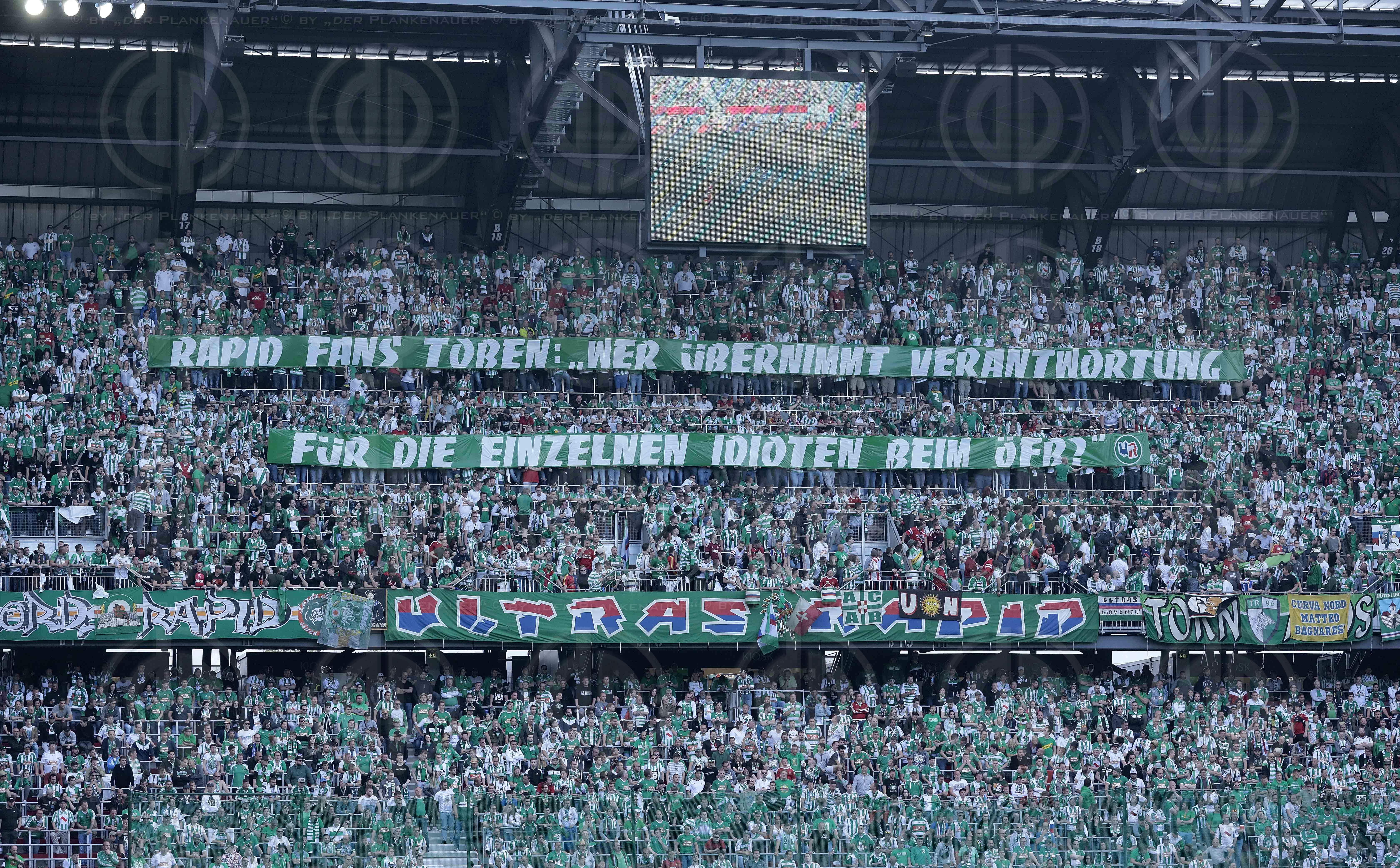 Bild zeigt: v.l. Transparent Rapis Fans toben... der Rapid Fans.