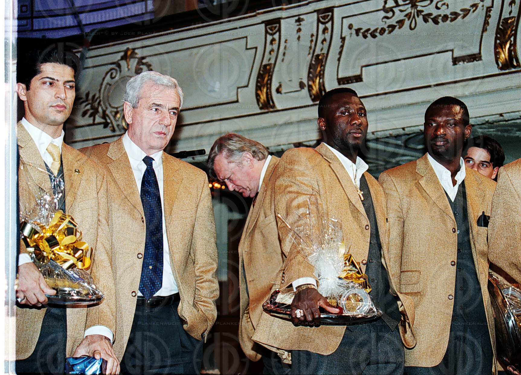 Der gesamte Vorstand des Vereins auf der Bühne. Vorne Hannes Kartnig, links Robert Boldischar, rechts Fritz Paulmichl, Gerd Pölderl, Dr. Peter Imre, Karl Platzer