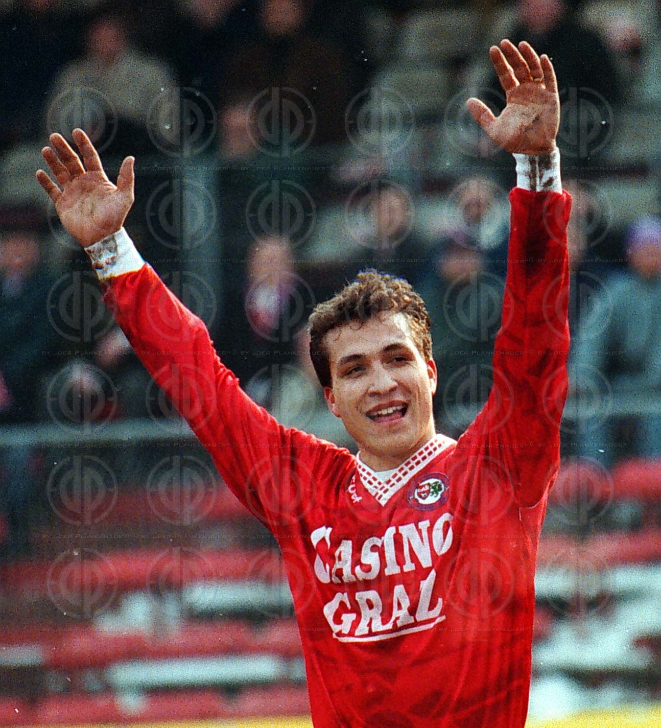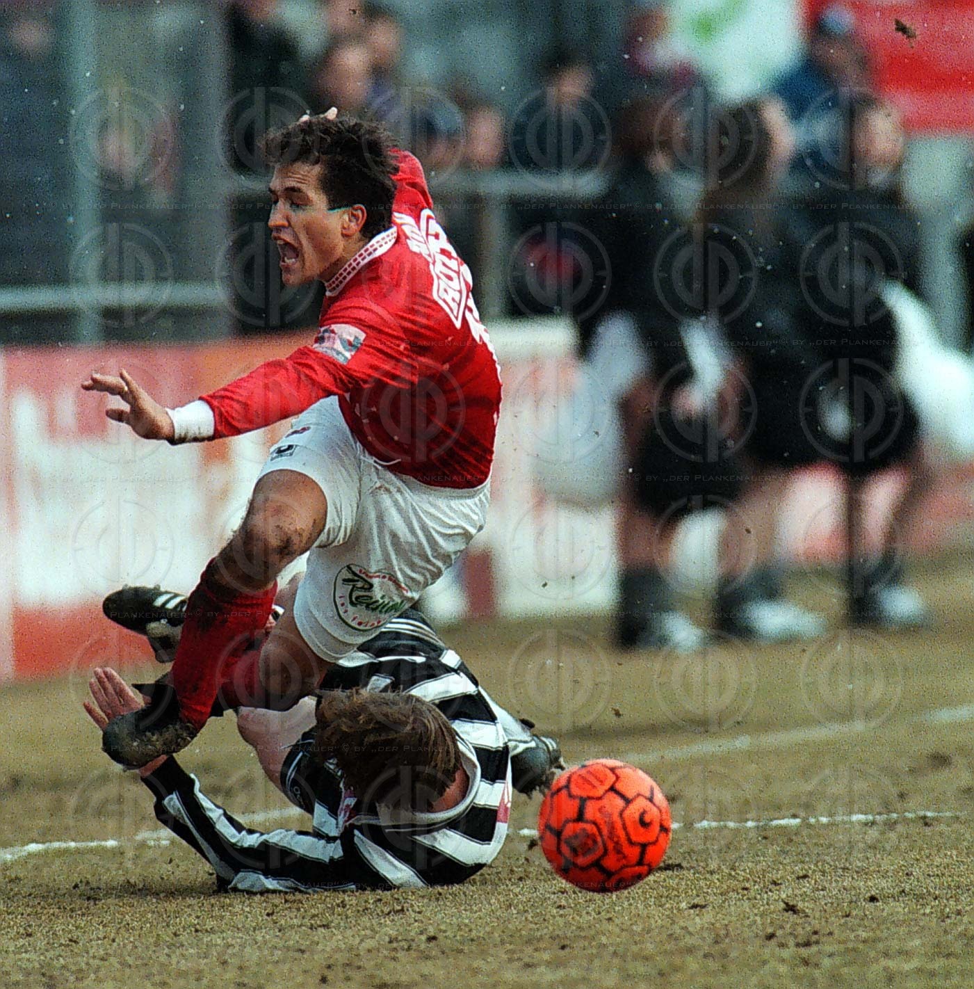 Graz,08-03-1996/05: GAK-LASK (1:0) Wieger wird von Hochmaeir attackiert Ó B4 Foto © by der Plankenauer