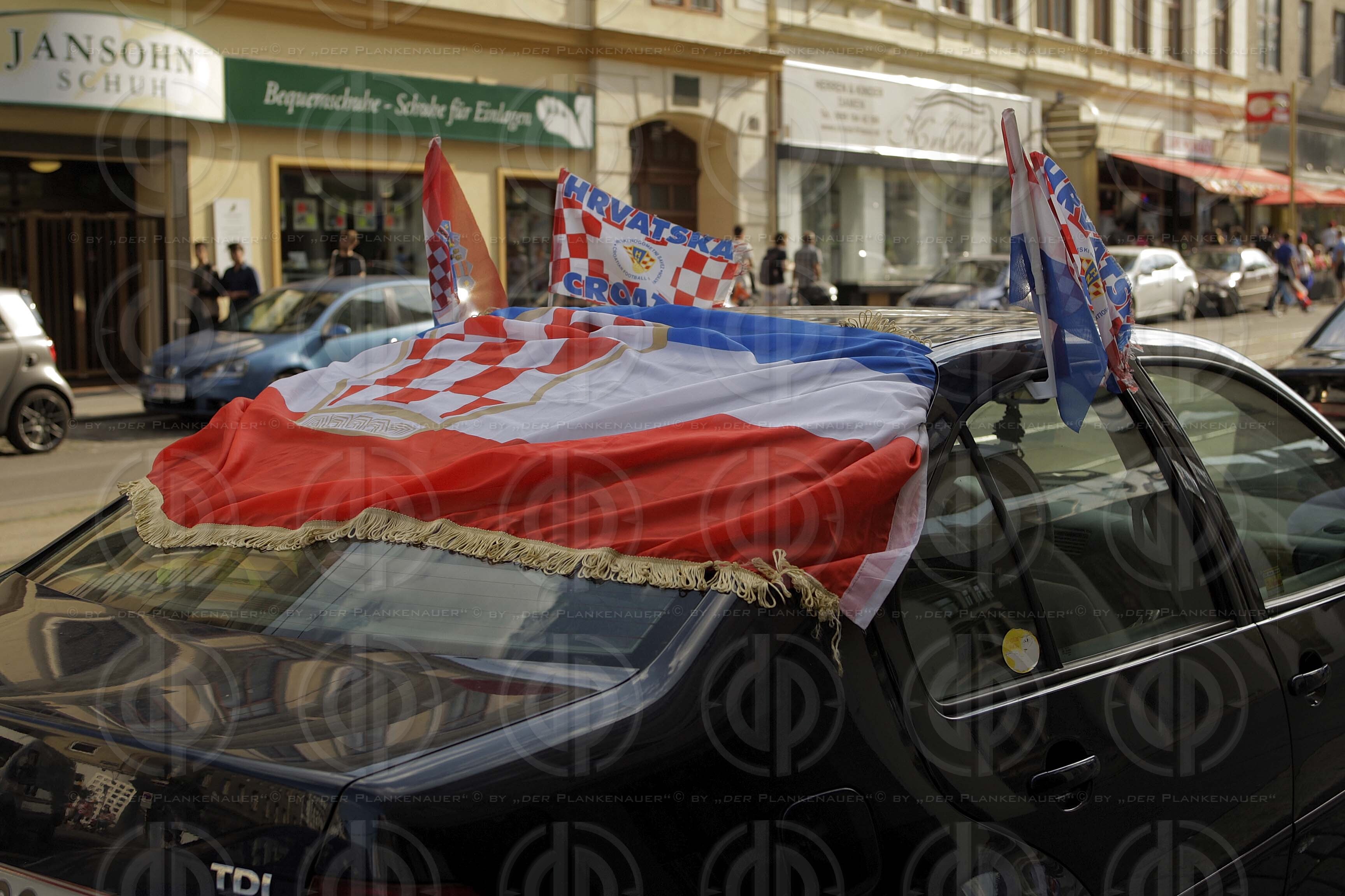 Bild zeigt: Beflaggtes Auto