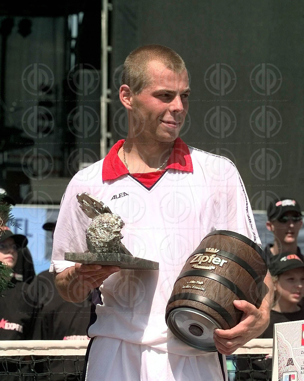 Zib gewinnt das Turnier in 2 Sätzen und präsentiert die Siegertrophäe.