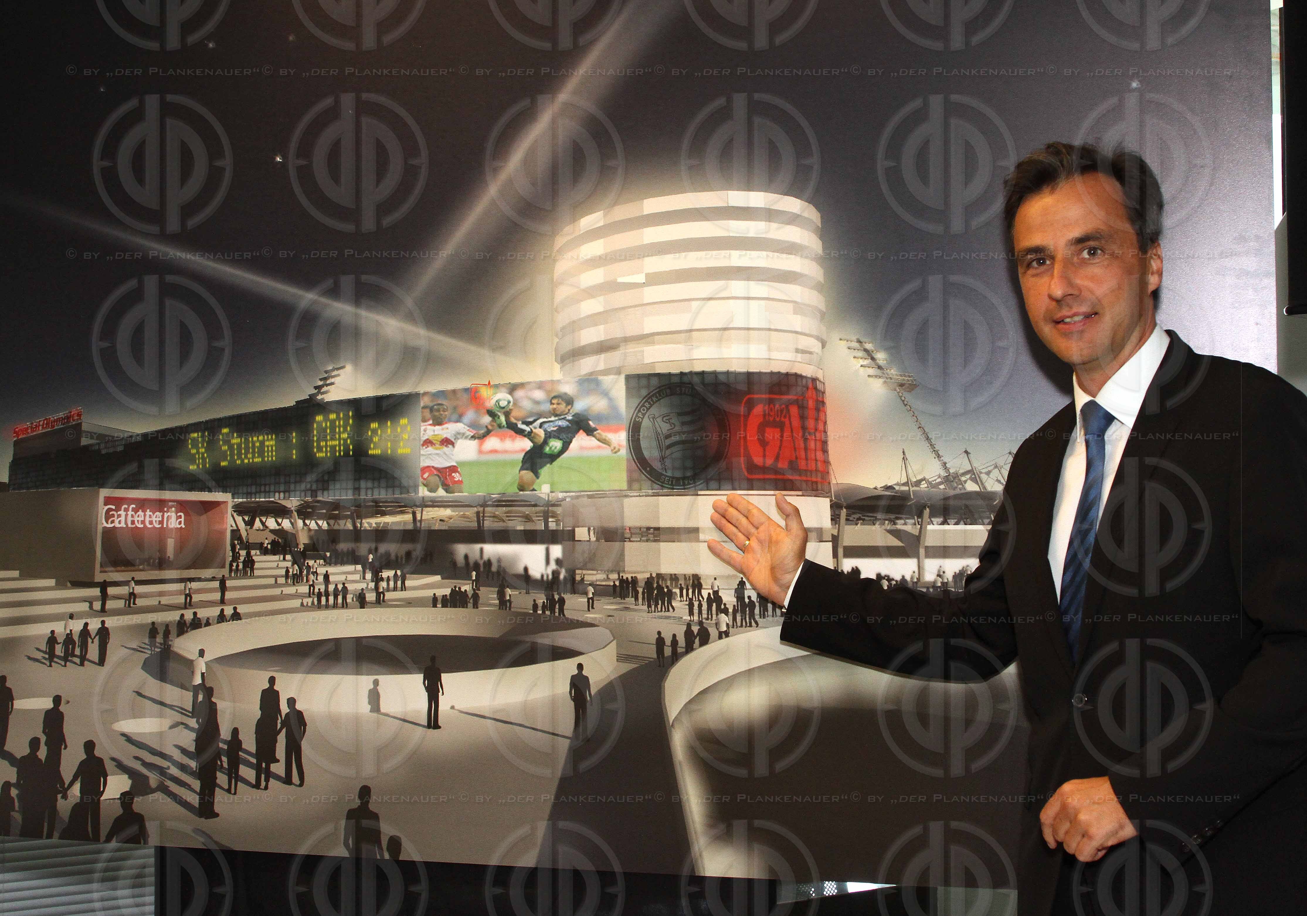 Fussball Tipp3 Bundesliga powered by T-Mobile Präsentation der Zukunftsperspektiven UPC Arena durch den SK Puntigamer Sturm Graz am 10.09.2012.